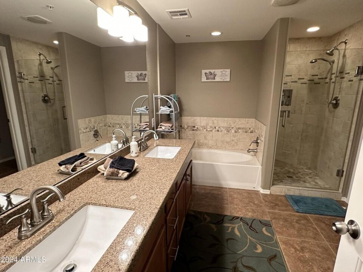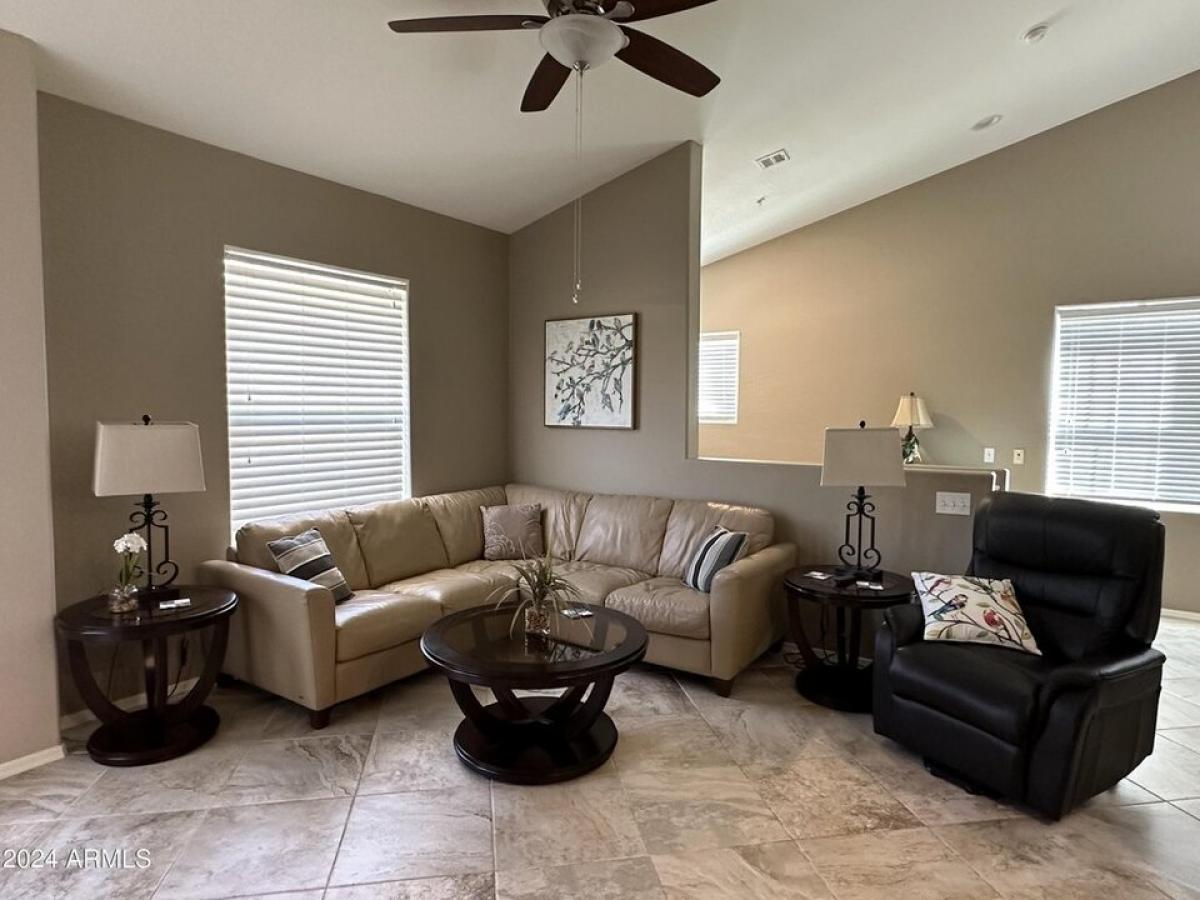 Summer 2025 available! 6+ months $1850/mo, or shorter term $1950/mo. Beautifully decorated and fully furnished 2 bedroom 2 bath townhouse with 2 private garage spaces. Winter/Spring subject to seasonal pricing. Split floorplan offers king bed in primary suite and queen in second bedroom, with lots of seating in the bright open living room, Separate dining area and large kitchen with breakfast bar are perfect for enjoying meals with friends and family. All living space is on 2nd level, above garages, Resort style gated community features a fabulous rec center with weight room, cardio equipment, library and business center, craft room, game room, pool table and more. Community pool with lots of shaded seating, spa, and multiple areas with BBQs and tables for al fresco dining.