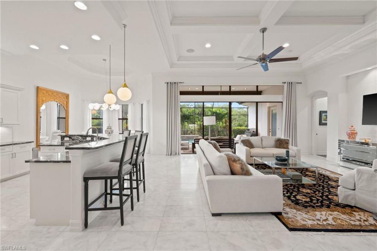 Welcome to this cream stucco single story home that has been recently updated. It is available for rent and is offered turnkey furnished with designer furniture (RH, Arhaus, etc) and equipped with linens, dishes, flatware, etc. Everything you could need for a lovely season in Naples. It is perfectly situated in a corner bend of Secoya Reserve - a gated community with only 57 homes. This neighborhood is located West of Livingston Road in North Naples and located just 5 minutes from the new state of the art Aubrey Roger's High School that opened in August 2023. The main living area has high ceilings and seamlessly combines the the family room, kitchen, and casual dining space. The main living space has been upgraded with 12x24 honed Carrera marble tile floors throughout. This space flows out to the lanai covered pool patio with sliding glass doors. The eat-in kitchen boasts granite countertops, white cabinets, subway tile backsplash, large center island with breakfast bar, and walk in pantry with new custom shelving. This home has 3 bedrooms + a den. The den has its own closet and is furnished with a pull out sofa to host additional guests. The primary suite includes brand new wool carpeting, dual custom walk-in closets, and an ensuite bathroom with Calacatta viola marble floors. The secondary full bathroom has also been recently renovated with Empress green marble floors and marble mosaic shower. The outdoor living space is fully equipped with a heated pool, grill, dining table, and fire table. Secoya Reserve is conveniently located minutes away from the Mercato, the Waterside Shops, Venetian Village, Fifth Avenue and Third Street, in addition to the famous Gulf of Mexico beaches. It has quick and easy access to I-75 and RSW Airport.