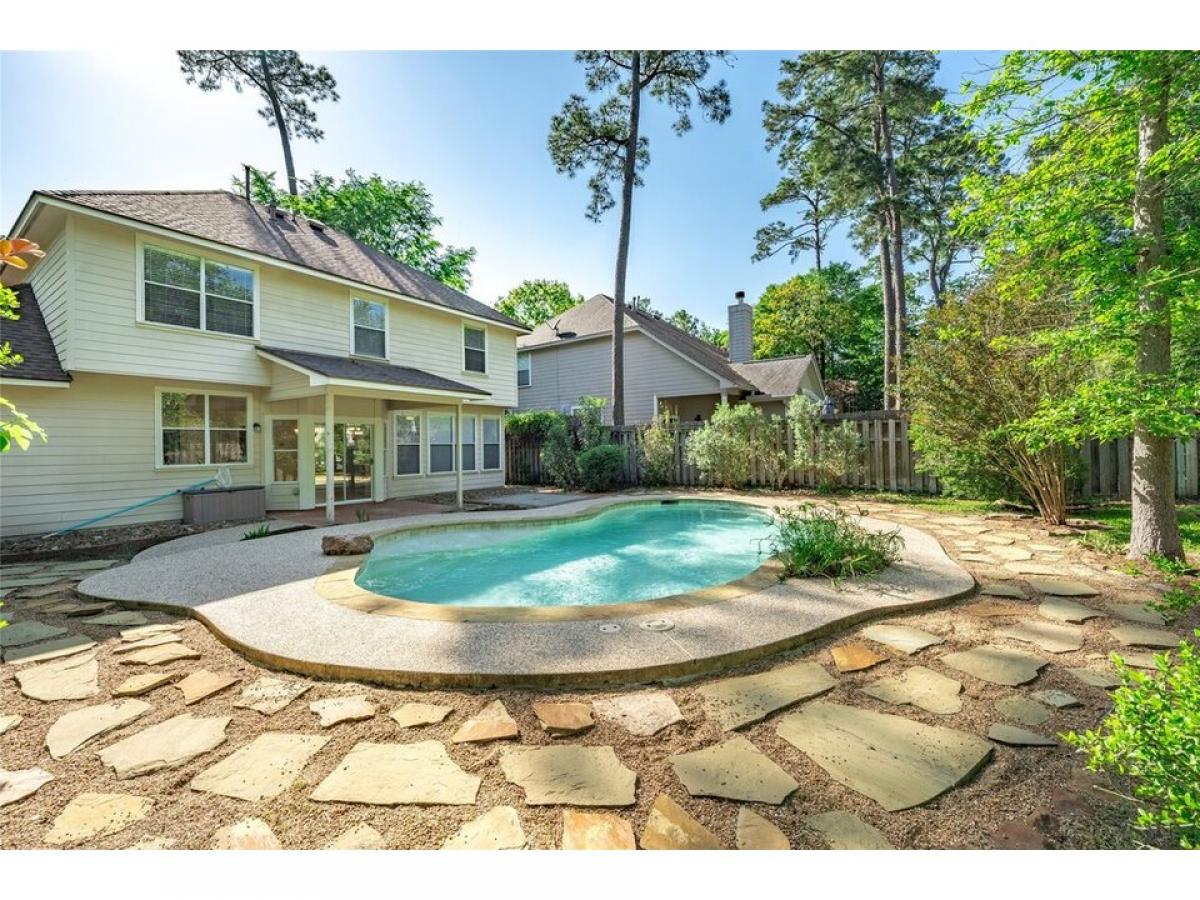Bright and open with a sparkling private pool! Located in the desirable Sundance area of Alden Bridge zoned to Buckalew Elementary school this home is neat, clean, and ready for immediate move in. The inviting front porch welcomes you to a light filled two-story entry. Formal dining or sitting room overlooks the front garden. The family room features a gas fireplace and is open to the breakfast room and kitchen with views of the pool and backyard. The kitchen features abundant cabinetry and counterspace with stainless appliances. Upstairs you will find a large primary suite with luxurious bath. There are three secondary bedrooms and a second full bath. Plenty of storage. Two-car garage. Covered patio and large backyard with room to play. Refrigerator, clothes washer and dryer included. Weekly pool and lawn maintenance is included.