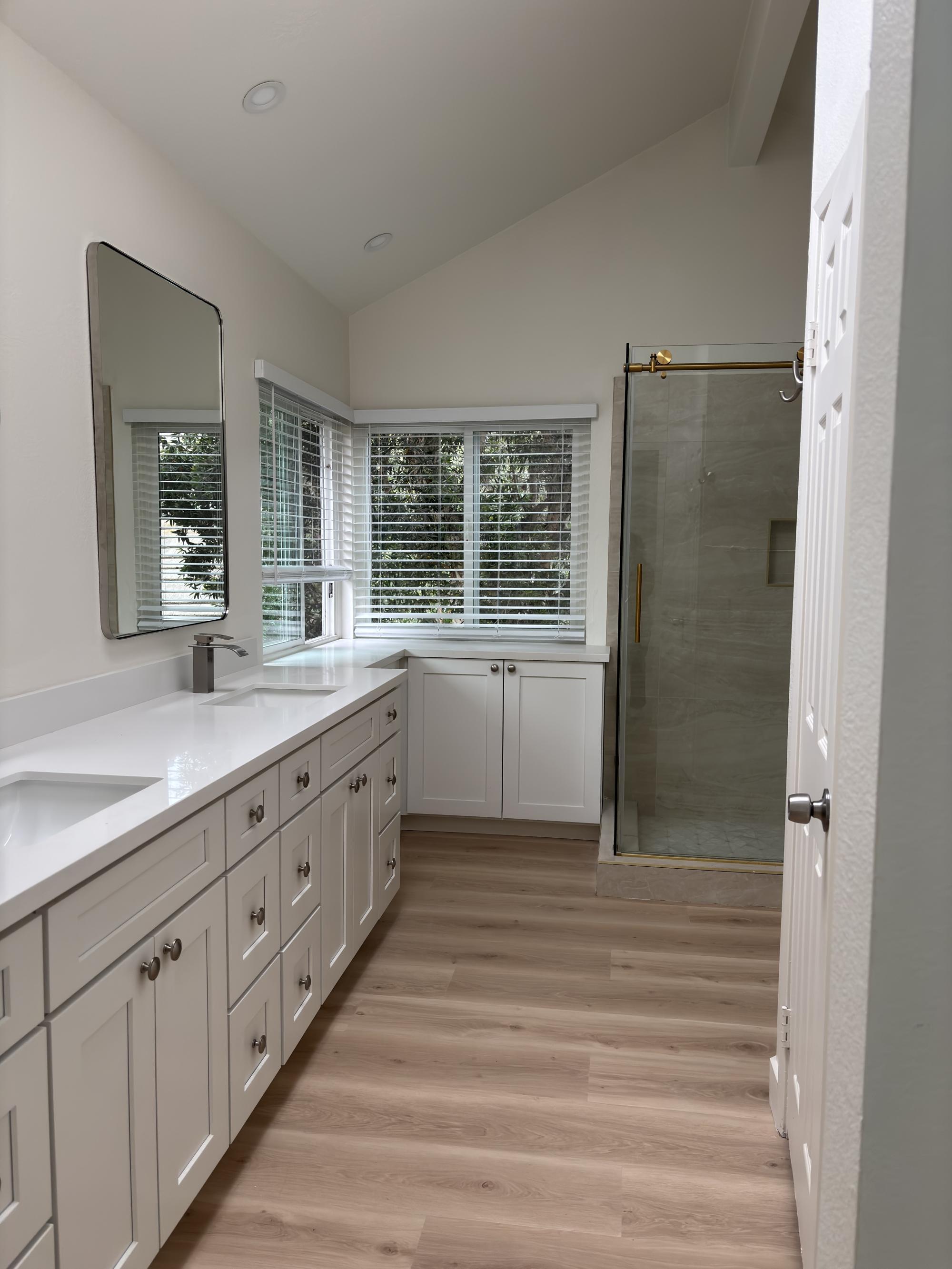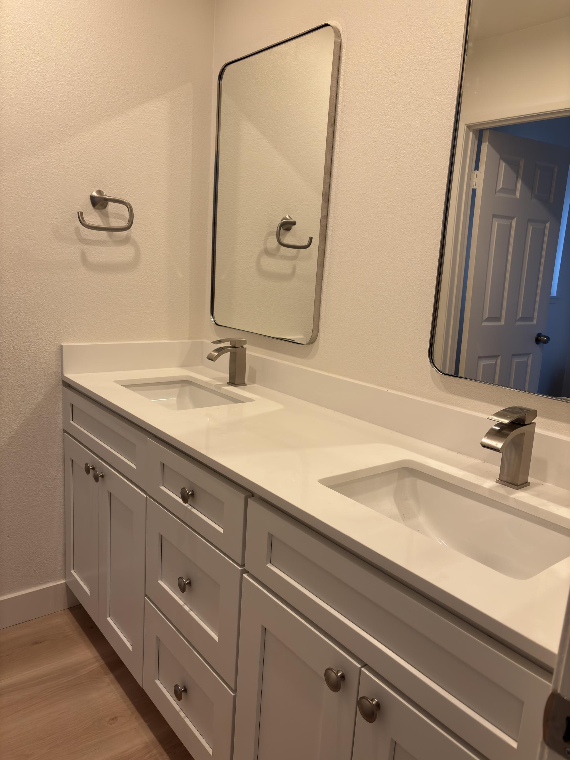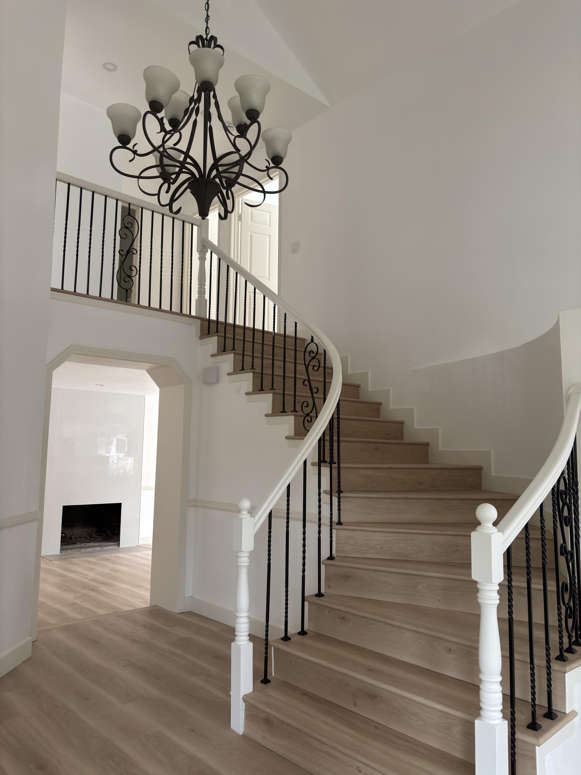 Upstairs, the luxurious primary suite includes a spacious shower and dual vanities. Three additional bedrooms offer plenty of space. The entire home features luxury vinyl flooring, and new paint inside.