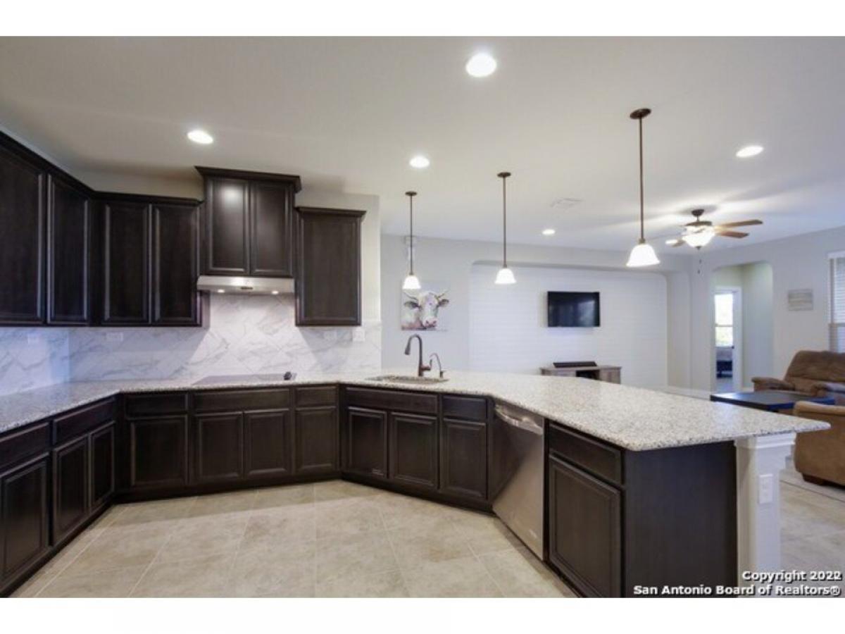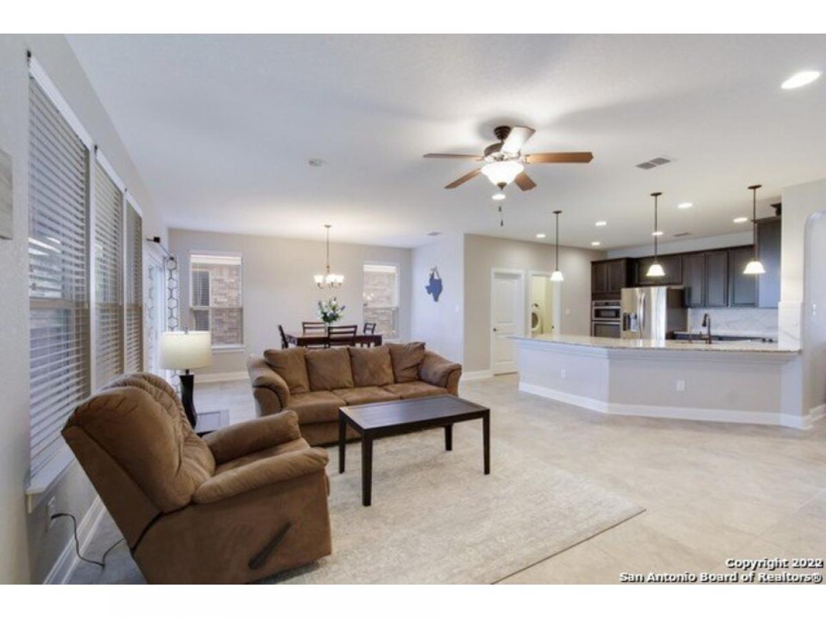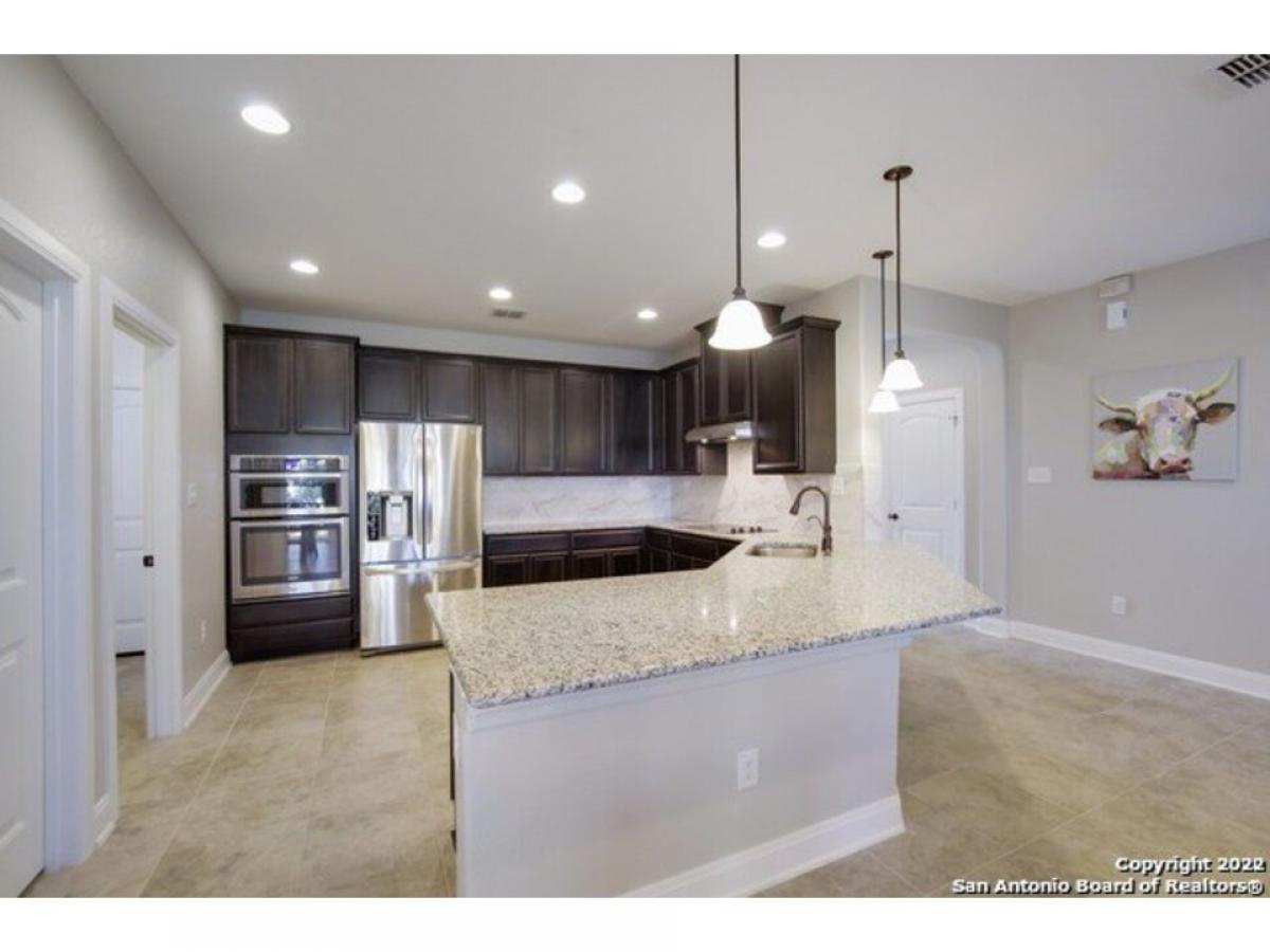 Bright and spacious home available just before school starts! This beautiful one story features an open floor plan, upgraded kitchen with granite counters and custom cabinets, and a large covered patio. Ceramic tile in the living spaces and carpet only in the bedrooms. The master retreat has a gorgeous walk in shower and a huge walk in closet. Stainless refrigerator, lawn maintenance and pest control included! Neighborhood has pool and park/playground. NISD with convenient access to I10, the Medical Center, the Rim and La Cantera. Welcome home!