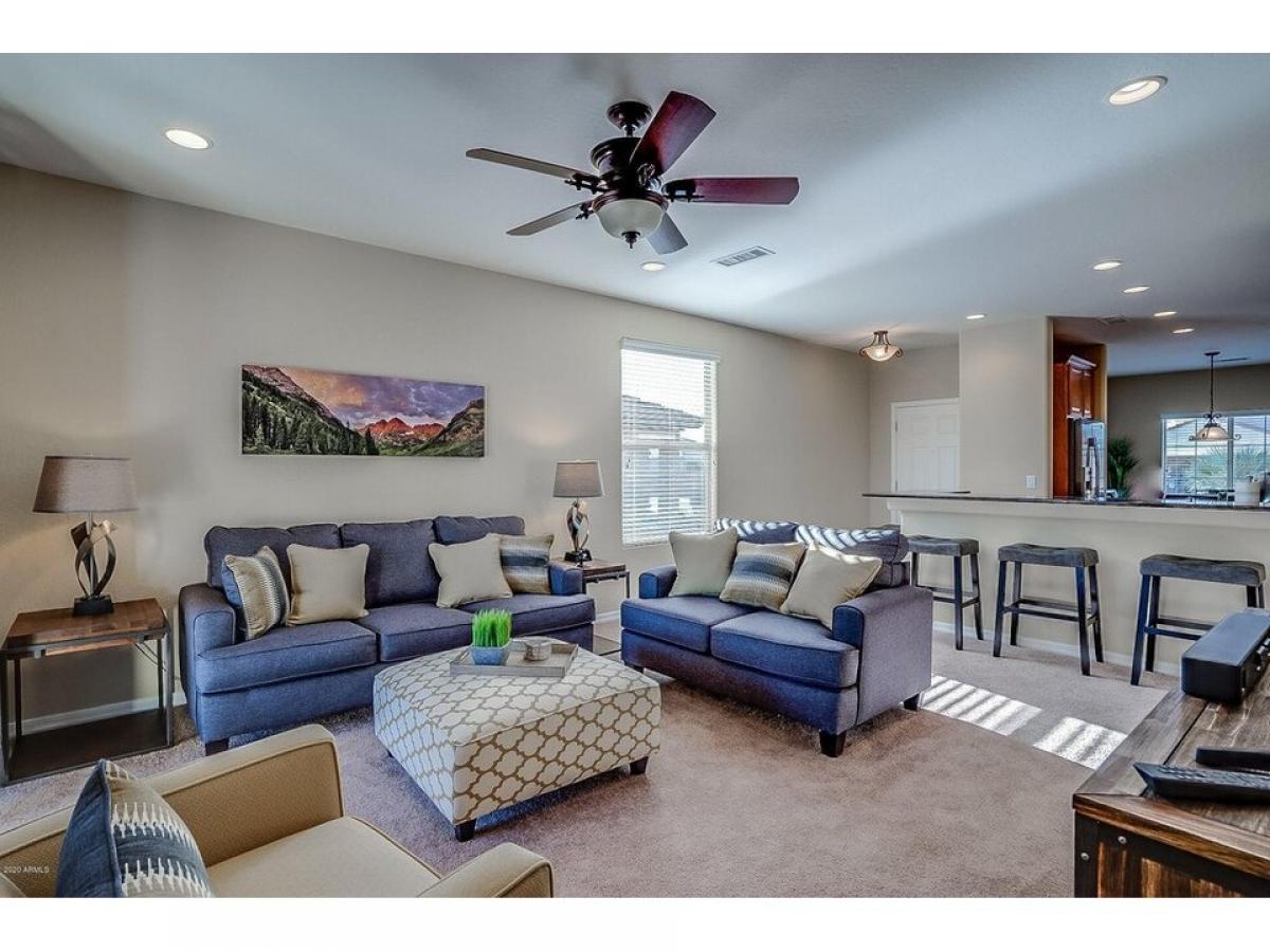 Beautifully appointed fully FURNISHED rental home in the high demand active adult community Sun City Festival. This stylish home features large bedrooms, master w/a king sized bed, 2nd bedroom w/queen bed, amp; den w/twin size futon. Catch your favorite shows on the large flat screen TVs, amp; relax in the cool desert evenings on the comfy patio while grilling dinner on the included BBQ. This home is located walking distance to the club house amp; offers stunning mountain views w/no neighbors behind - location could not be better. Tenants welcome to community amenities w/low pass fee. Rates vary w/season amp; length of stay. Requires at least 1 occupant age 55+, no occupants under 18. No Pets. No Smokers Community features include golf course, recreation center, clubhouse, pool, and workout facilities. Community events and classes. Pickle ball and sports courts. Tenant enjoys accesses to amenities with registration and low pass fee.