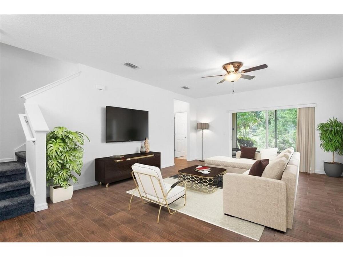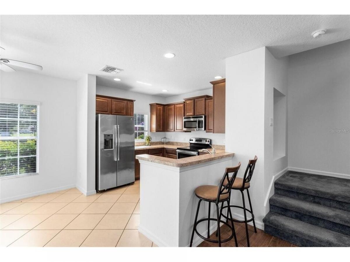 Beautiful End Unit with Ultimate Privacy at Emerald Lake! Discover this stunning and SPACIOUS 3-bedroom, 2.5-bath corner townhome, perfectly designed for entertaining and modern living. With no rear neighbors, this private retreat offers both comfort and convenience. Spacious Living Step into an inviting open-concept layout that seamlessly blends living, dining, and kitchen spacesmdash;perfect for creating memorable moments with family and friends. Modern Kitchen: The chefrsquo;s kitchen boasts an abundance of cabinet space, gleaming stainless-steel appliances, and a roomy pantrymdash;ideal for all your culinary adventures. Luxurious Primary Suite: Unwind in the serene primary suite featuring a spacious walk-in shower, dual sinks, and a generous walk-in closet. Private Outdoor Oasis: Relax on your covered lanai, surrounded by lush greenery and ultimate privacy. Resort-Style Amenities: The Emerald Lake community offers fantastic amenities, including a sparkling pool, cabanas, and a fun-filled playground. Prime Location: Conveniently situated just 14 miles from Disney, close to restaurants, schools, and shops. Commuting is a breeze with the SunRail station only 3 miles away! And yoursquo;ll have the added convenience of two dedicated parking spaces right outside your front door.