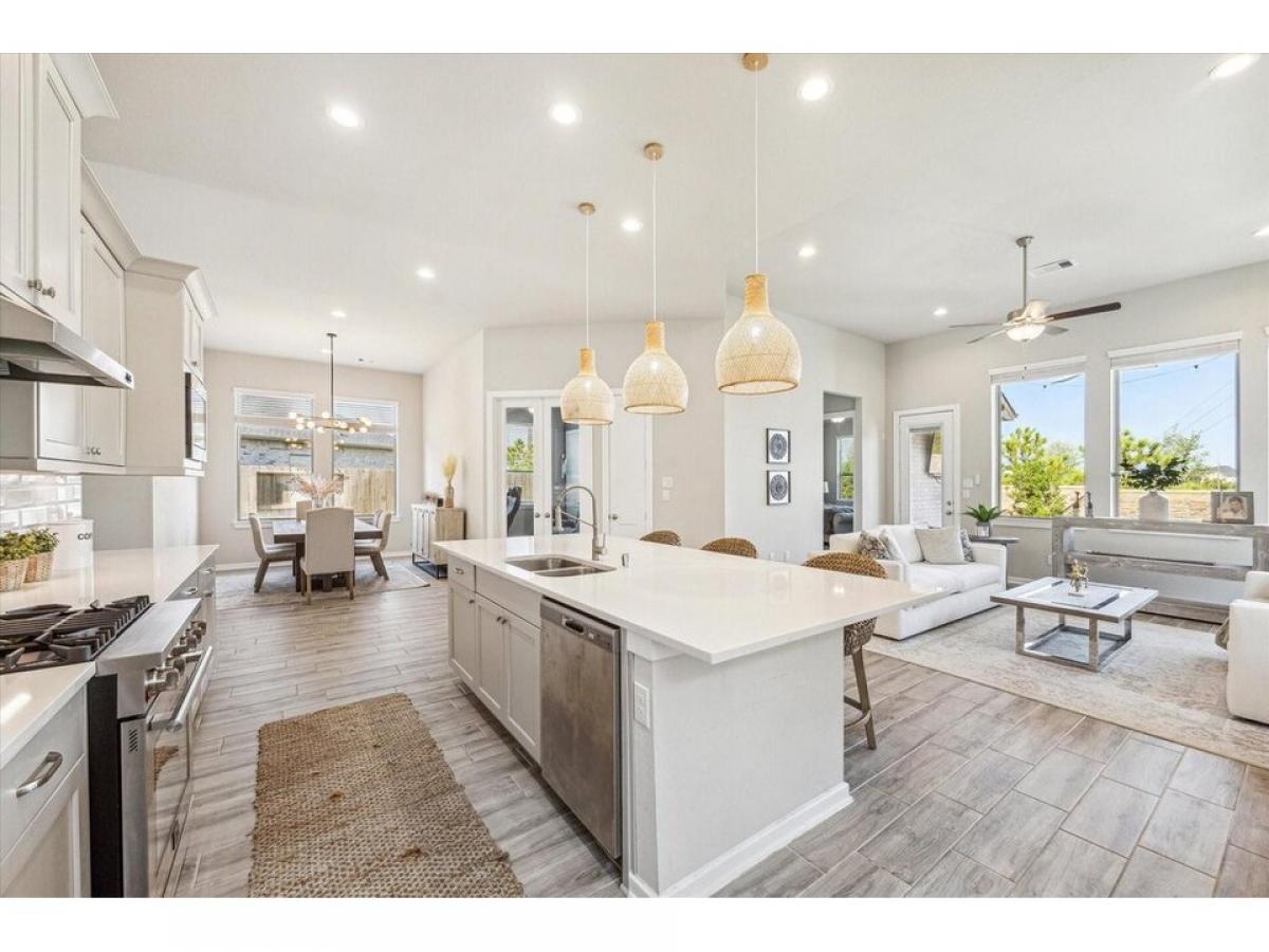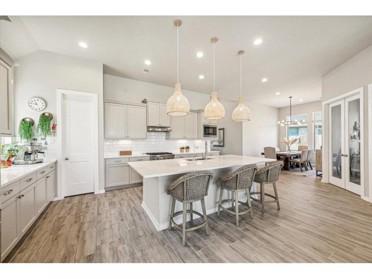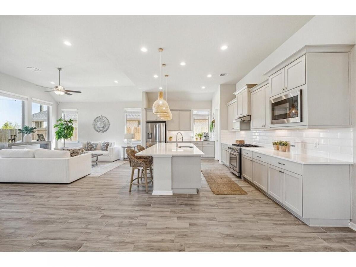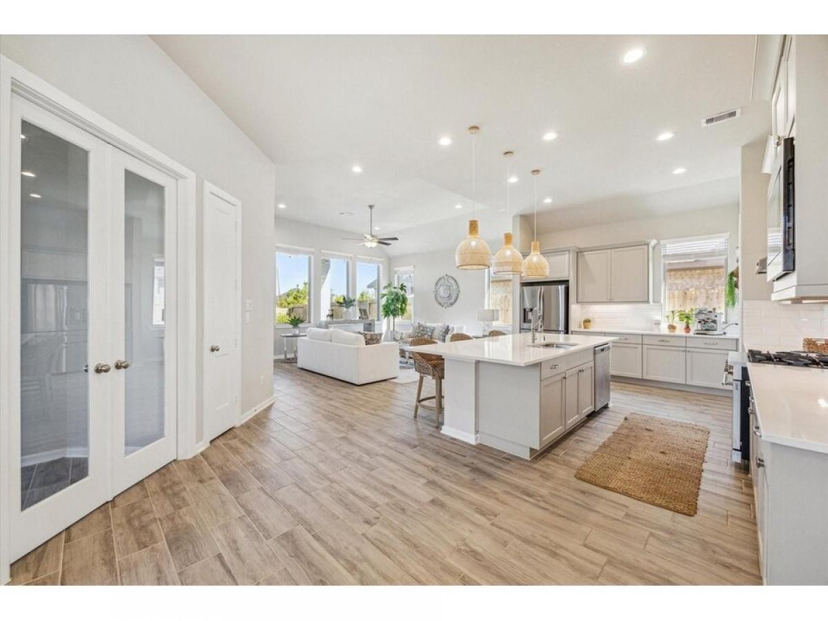 All appliances included. Beautiful home with no rear neighbor, developer wall behind! Open Concept one story with 4 bedrooms plus study, 3 baths, amp; 2 car garage. Amazing Gray cabinets w/satin nickel hardware, quartz c-tops in the kitchen amp;primary bath, wood look tile in all the main areas amp; study, tile to the ceiling in all 3 showers, under-cabinet lighting, upgraded pendant lights, 8-foot doors throughout, sprinkler system, full gutters, 2rdquo; cordless blinds included!quot; Available for a June 1st Move in.