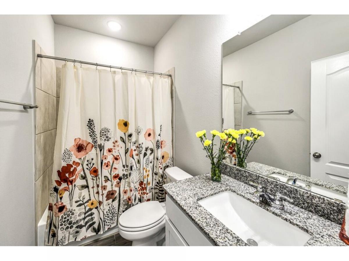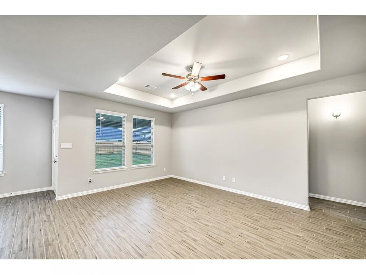 Gently lived-in, 3 bedroom, 2 bath home, located on a quiet street with a large covered patio and good-sized backyard ! Great open kitchen / dining / family room layout, stainless steel appliances in kitchen, granite countertops throughout, carpet in bedrooms and practical tile flooring elsewhere, well-lit with attractive tray ceilings in the family room and primary bedroom. Enjoy the tankless water heater, refrigerator, washer amp; dryer included. (The photos show the home as it was in February, 2022, before the washer, dryer, and fridge were in place.) Community amenities include a pool and splash pad, recreation center, parks, and walking paths. Enjoy restaurants and shopping in Fulshear and along nearby FM 1093, giving easy access to Westpark Tollway and Grand Parkway. Available for QUICK move-in !
