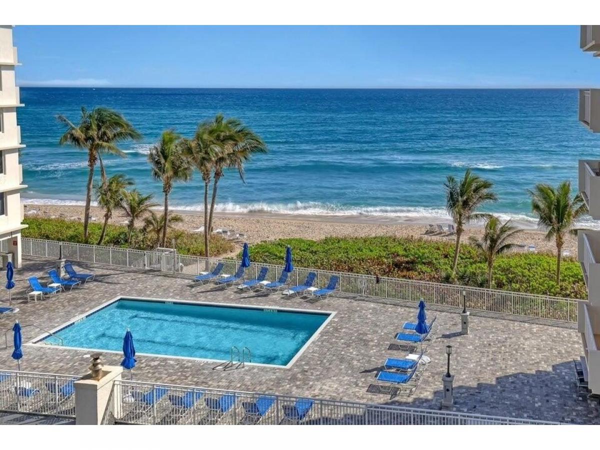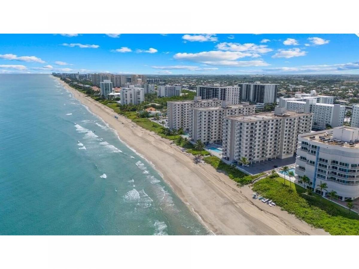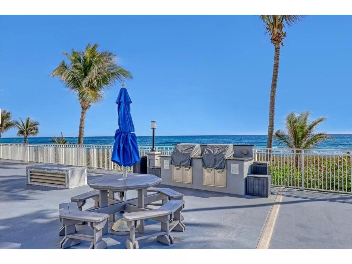 PRIVATE BEACH!! EXCELLENT LOCATION! Feel the BREEZE of the OCEAN amp; INTRACOASTAL from this beautiful waterfront upgraded 2 bed 2 bath. Located at the Ambassador in Highland beach. This unit has a WASHER amp; DRYER! A beautiful upgraded kitchen with extra cabinet space, stainless appl, and a VIEW of the INTRACOASTAL! Who loves cooking with a view. Spacious primary bedroom with extra closet, WITH BEAUTIFUL VIEWS Second bedroom has private bath and balcony with exceptional sunset views complete with decorative barn door for privacy. Large living area with great balcony with breezy VIEWS! All NEW grey plank flooring throughout this spectacular condo located on the 4th floor corner unit. HURRICANE WINDOWS, elevator, guard gate, secure lobby door, GARAGE parking, Internet amp; cable all included