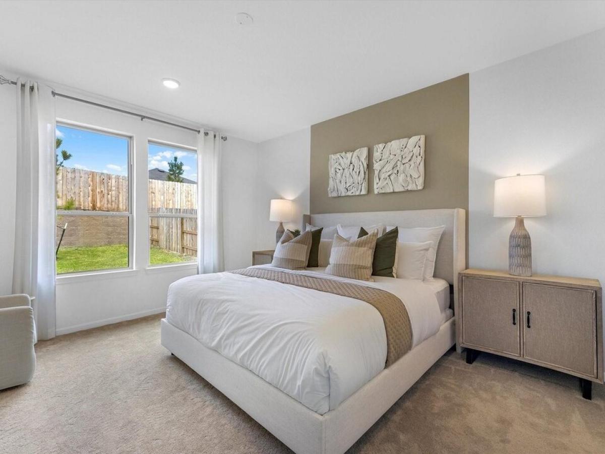 Welcome to this stunning 2-story, 2481 sq. ft. home offering comfort and luxury. The spacious layout includes a Family Room open to a gourmet kitchen, a primary suite with separate shower and tub, dual sinks, and a large walk-in closet, as well as an Office/ Hobby Room, all on the first floor. Upstairs features a large gameroom, 3 bedrooms, a full bathroom, and a laundry room. Enjoy the whole-home water softener and a full alarm system with cameras for added security. The backyard provides a peaceful retreat with no rear neighbors, a fenced yard, and a covered porch. Just 5 minutes from I45, this home offers the perfect blend of country living and city convenience.