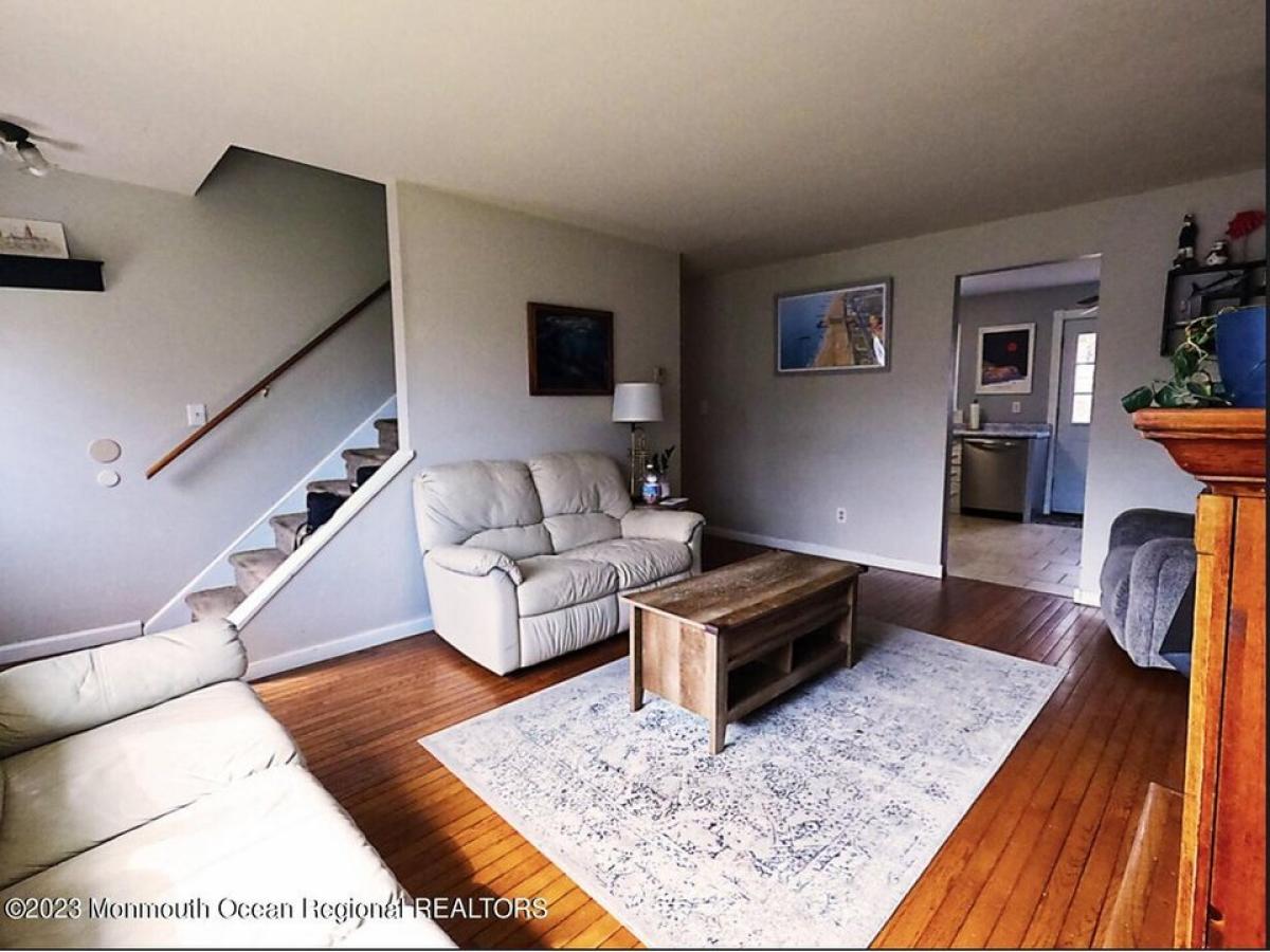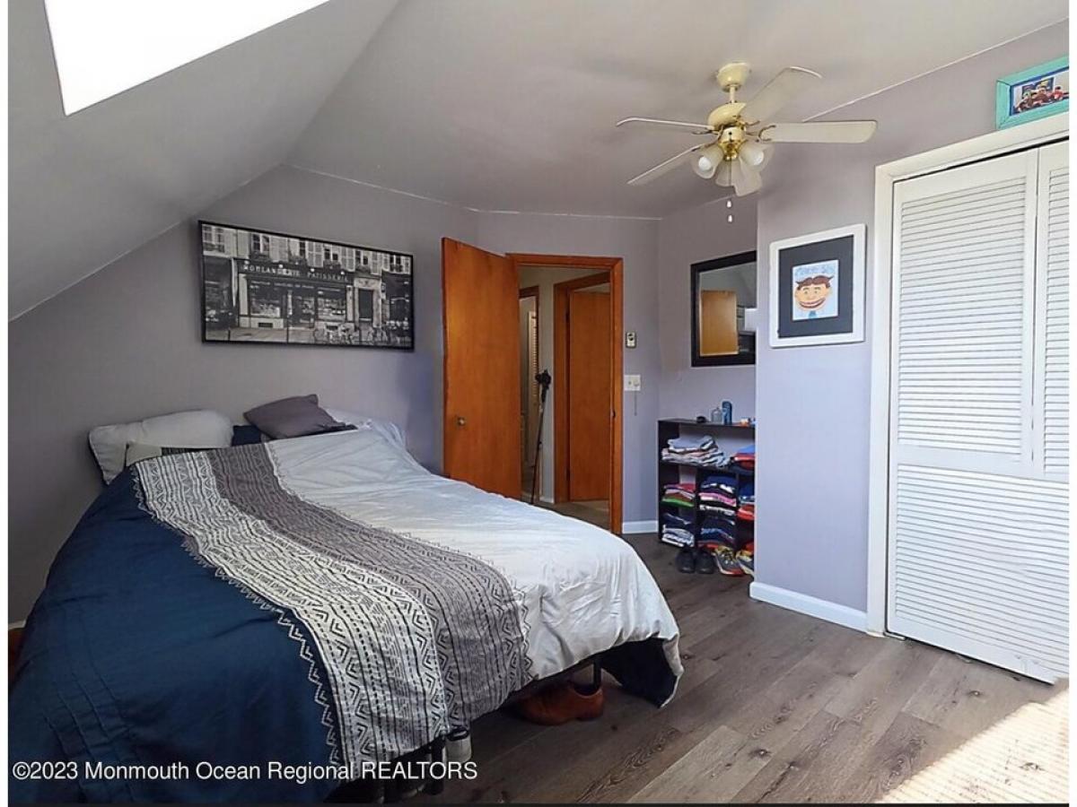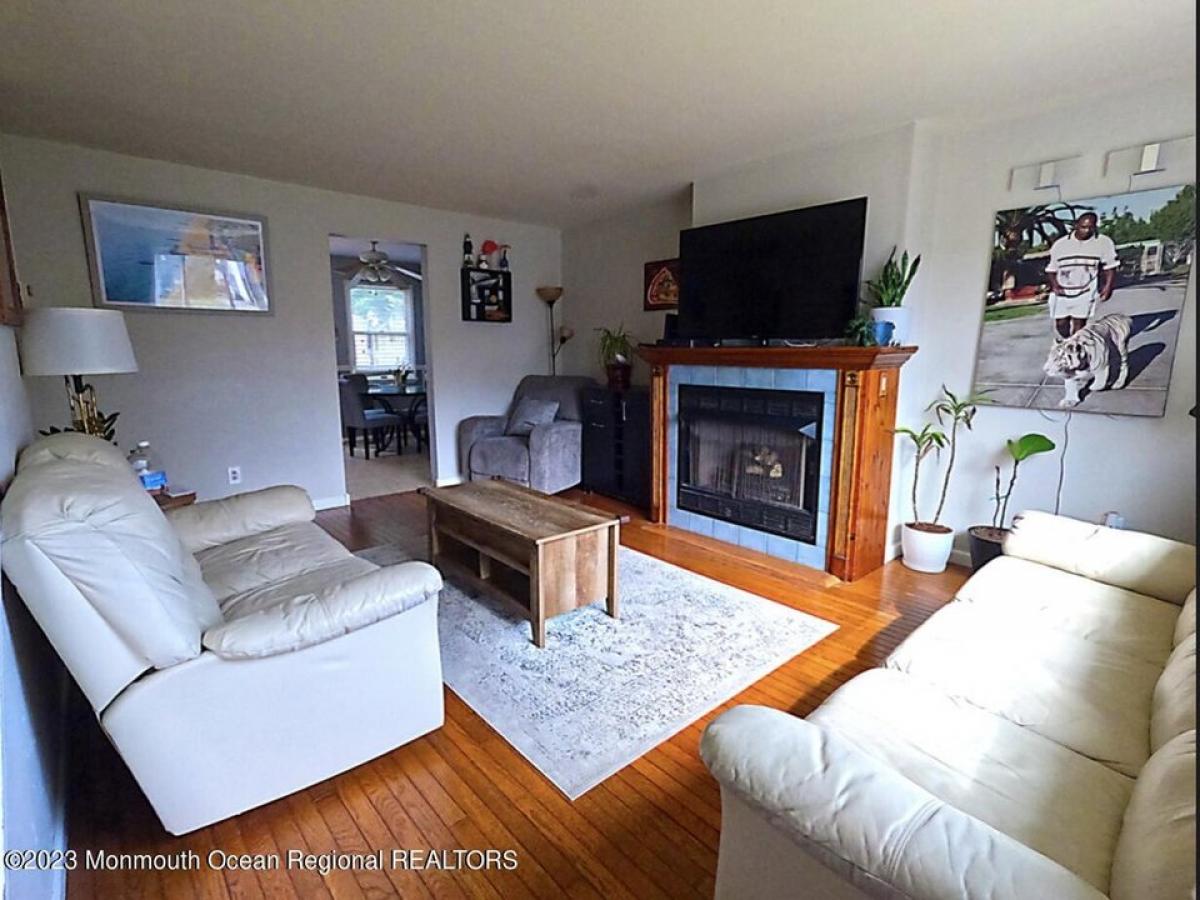 Discover the charm of this expanded Cape in the coveted Shark River Hills neighborhood. This home features a living room set on beautiful hardwood floors, ensuring warmth and elegance. With five bedrooms (3 Upstairs, 2 downstairs) and two full bathrooms, there#039;s ample space for everyone. The eat-in kitchen opens directly to a private deck, leading into a fenced backyard, perfect for both relaxation and entertainment throughout the summer months. Its prime location offers easy access to the stunning beaches of Belmar and Avon-By-The-Sea, as well as the Shark River Hills Marina, with convenient routes to major thoroughfares like Route 18 and the Garden State Parkway.