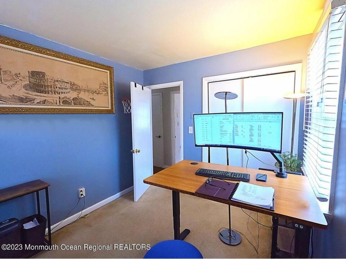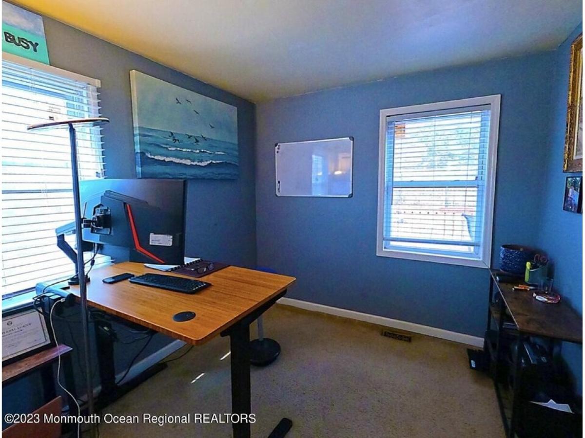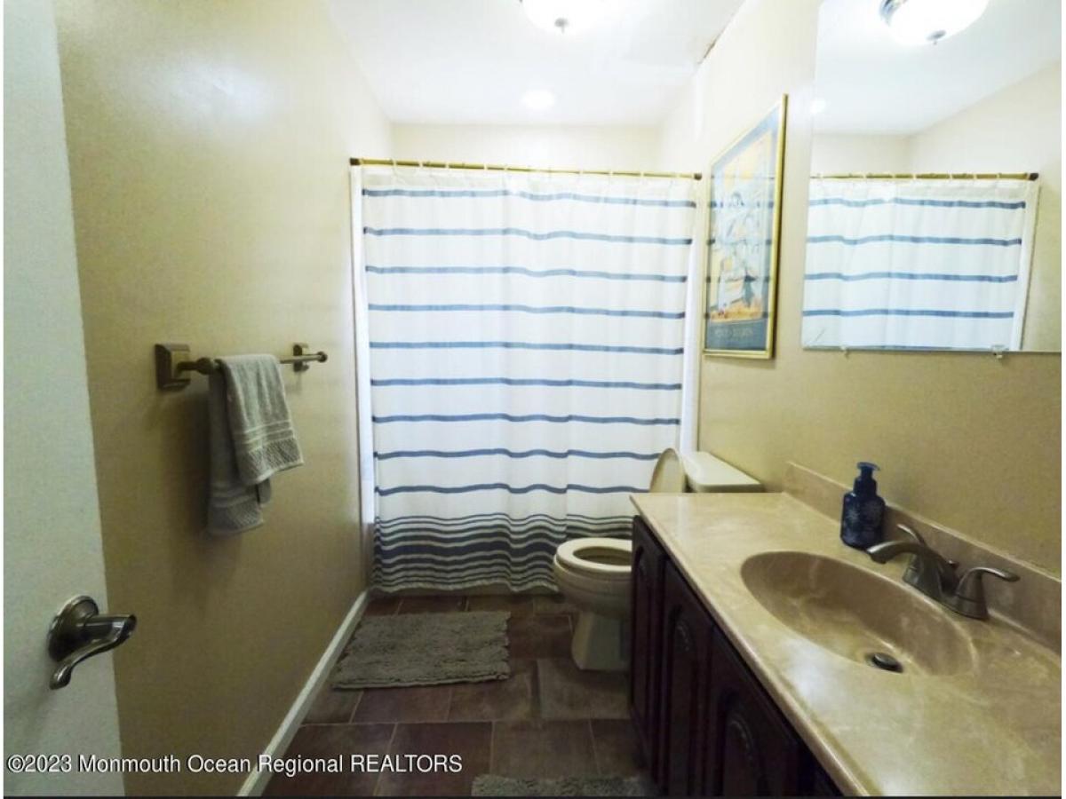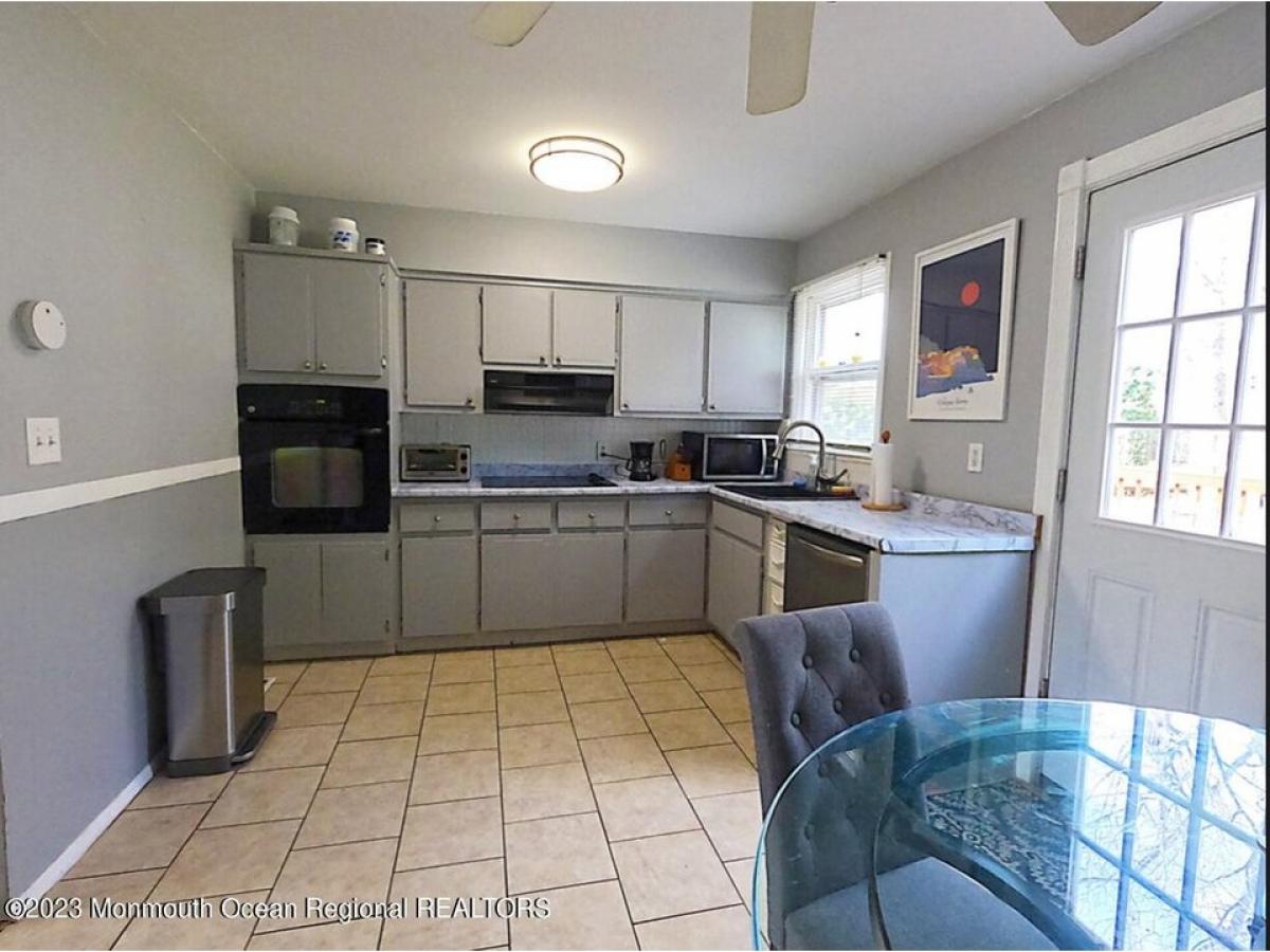 Discover the charm of this expanded Cape in the coveted Shark River Hills neighborhood. This home features a living room set on beautiful hardwood floors, ensuring warmth and elegance. With five bedrooms (3 Upstairs, 2 downstairs) and two full bathrooms, there#039;s ample space for everyone. The eat-in kitchen opens directly to a private deck, leading into a fenced backyard, perfect for both relaxation and entertainment throughout the summer months. Its prime location offers easy access to the stunning beaches of Belmar and Avon-By-The-Sea, as well as the Shark River Hills Marina, with convenient routes to major thoroughfares like Route 18 and the Garden State Parkway.