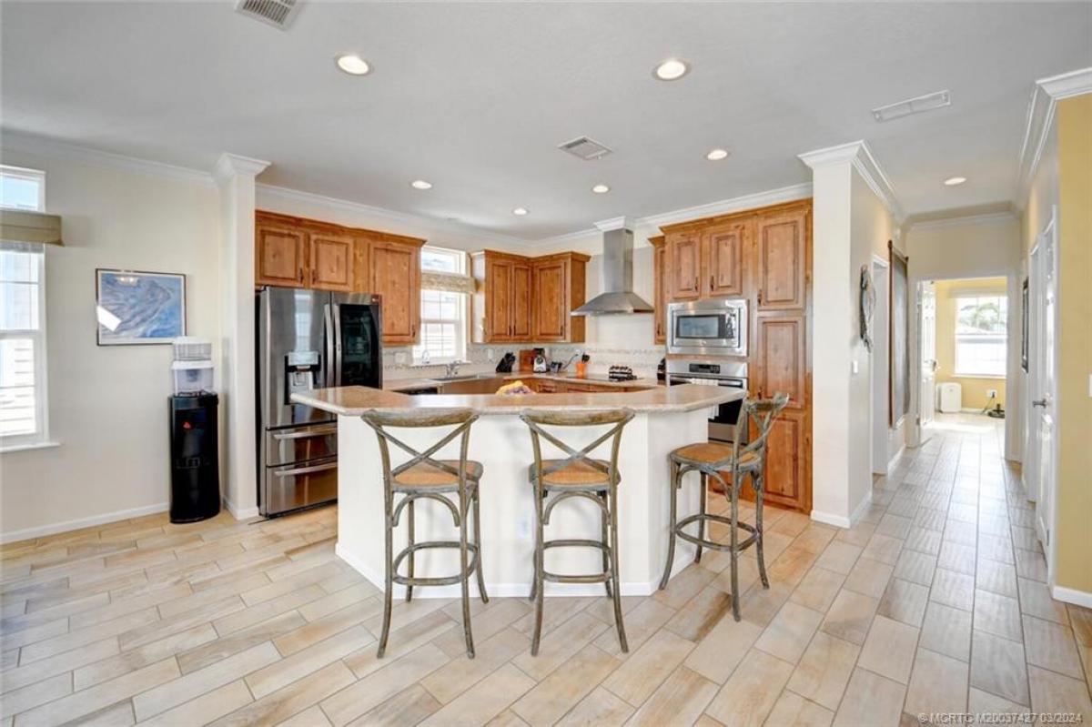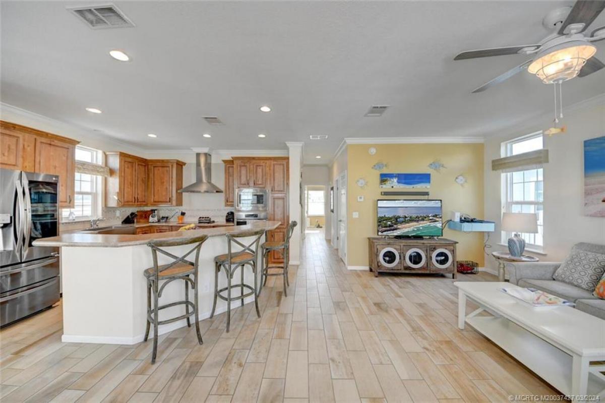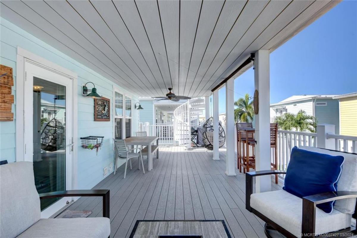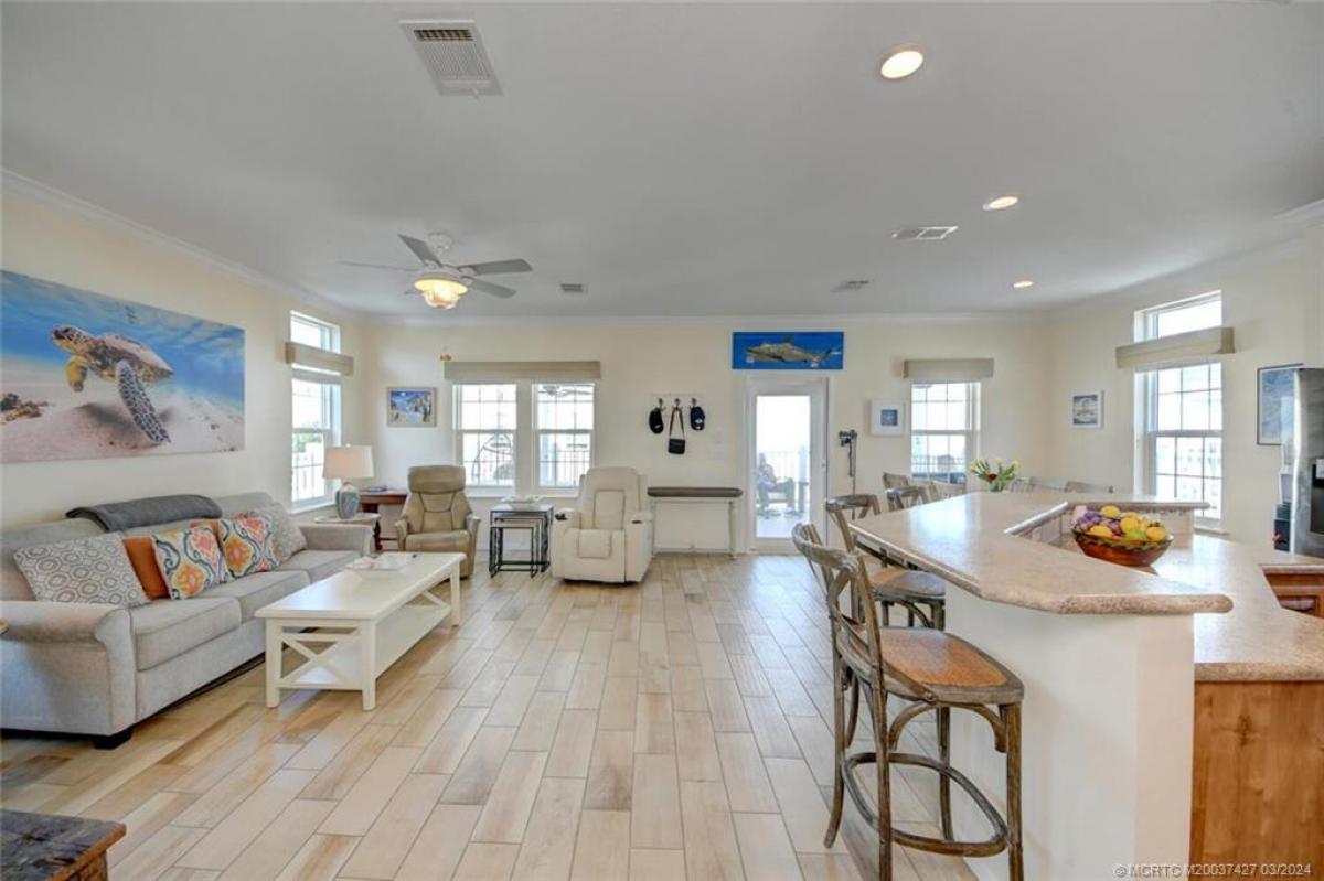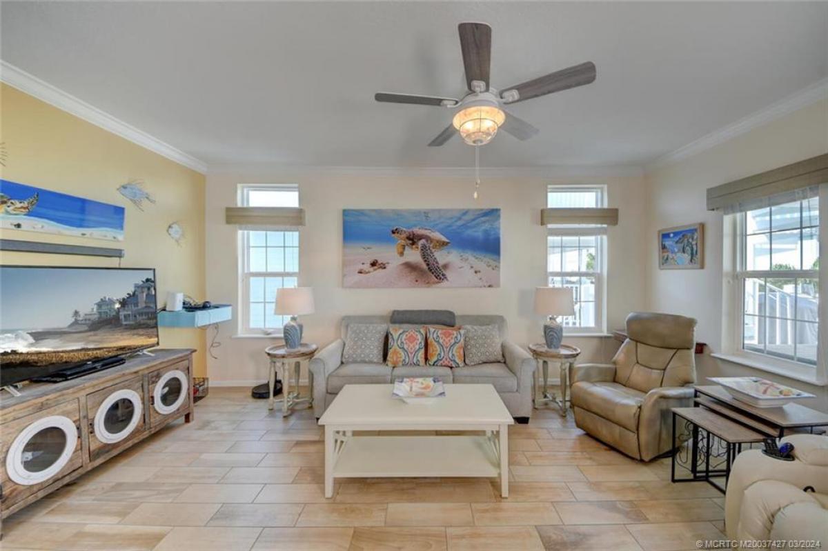Available April 15, 2024. Minimum of 3 month stay, $2,850.00 off season/$4,000.00 seasonal monthly rent including Wi-Fi, streaming (Netflix, Hulu, HBO, etc.) & all utilities - electric up to $100.00 per month Turquoise Turtle is a 2/2 furnished water view home on the Indian River in desirable Ocean Breeze Resort. Minutes to sandy beaches, boat ramps & fishing. Bright home w/large LR & dining area. Stocked kitchen w/wall oven, cooktop & upgraded refrigerator. Main bedroom w/king bed, walk-in closet, step-in-shower & dual sinks. 2nd bedroom has a functional work space & sitting area. Pull out sofa sleeper in LR. Laundry room w/washer & dryer. Extended balcony & upper level deck w/terrific water views! Parking for 2-4 vehicles w/tandem drive-thru garage, golf cart garage & carport allowing space for trucks, golf carts, motorcycles, small boats & trailers. Amenities include pickleball, fitness center, fishing pier, resort style pool, billiards, cabana café & hot tub.