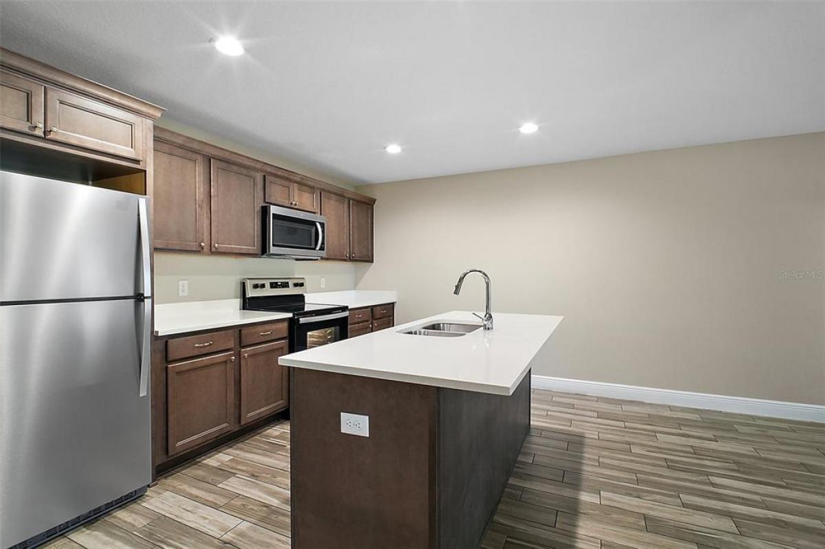 Available January 1, 2026 - Modern 3-Bedroom 2-bath Duplex in Eustis! Welcome home to this stylish and thoughtfully designed ½ duplex, offering the perfect blend of comfort and modern convenience. The open-concept layout features wood-look tile flooring throughout, creating a clean and cohesive feel. The contemporary kitchen is equipped with stainless steel appliances, quartz countertops, and abundant cabinetry, ideal for everyday cooking or hosting. A dedicated laundry closet is convenient - ly positioned between the second and third bedrooms for easy access. The primary suite offers a spacious walk-in closet, adding extra functionality to your daily routine. Step outside to enjoy a large backyard, perfect for relaxation, play, or entertaining and a 1-car garage provides additional storage and parking. Bi-annual AC maintenance included. Schedule your tour today and make it your next home!