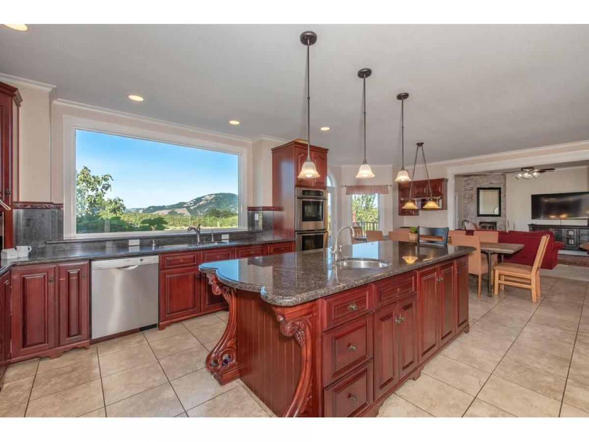 Perched on a panoramic point within Sonoma's Bennett Valley, this 5,414 sq ft retreat offers seven bedrooms and five and a half baths on 44 acres of thriving vineyards, professional equine facilities, and indulgent views. Impressive with sunny windows, custom trimmings, tray ceilings, and multiple fireplaces, your Tudor-style estate charms with a centerpiece stone-lined wine cellar, shade-dappled landscaping, and outdoor oasis with heated pool. Complete with expansive gourmet kitchen, a pair of thirty-stall equine barns, twelve acres of sunkissed Syrah vines, solar paneling, two residential income units, and a 7,200 sq ft workshop, this versatile property captivates with privacy, adventure, and luxury just minutes from idyllic Santa Rosa and Kenwood.