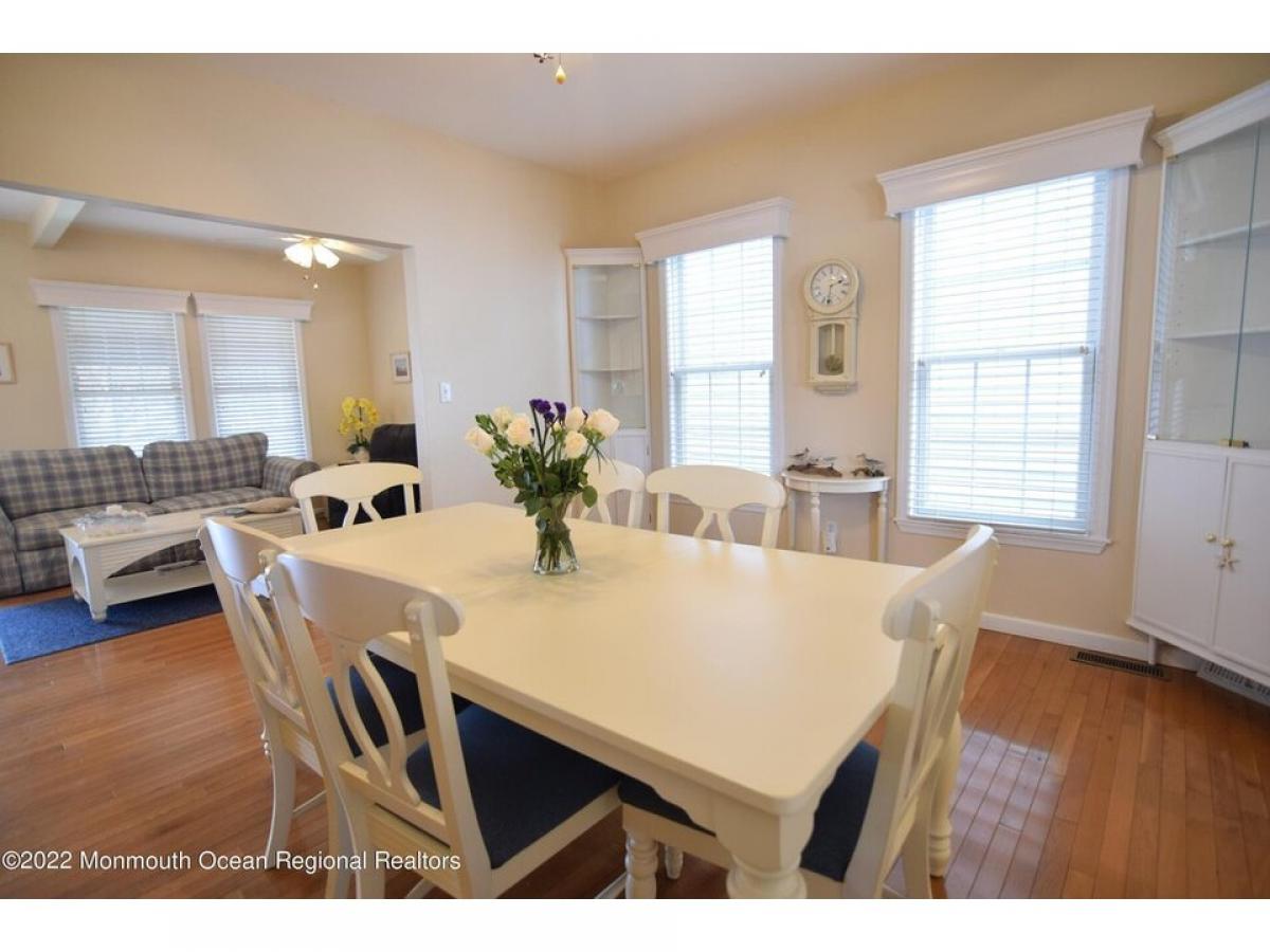 Enjoy life in this clean amp; renovated shore colonial just a few blocks to the beach amp; boardwalk, and walking distance to great restaurants amp; hotspots in downtown Belmar amp; Lake Como. Home features 3 bedrooms, 2 full baths, 9 ft. ceilings on both levels, open layout, hardwood floors throughout, central air, 1st level laundry, and beautiful rocking chair front porch. Fenced in back yard includes outdoor dining set with umbrella, BBQ grill and outdoor shower. Property runs from 13th to 14th Avenue with one dedicated parking spot in back. (3 Queen Beds plus Bunk Beds with trundle). Pets considered on case-by-case basis. Call Today!