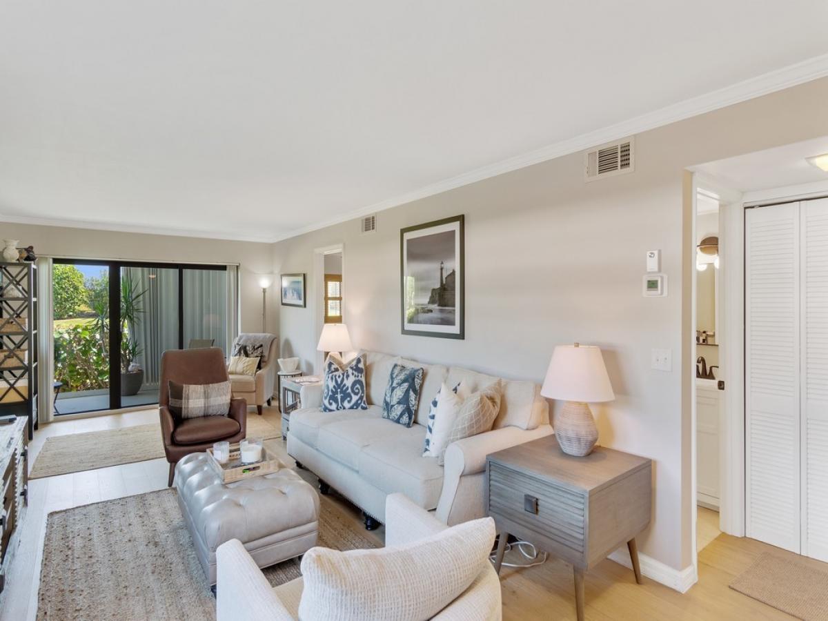 Steps to the Beach and River! This updated 2/2 is move in ready for Winter bookings now November to end of December. Available again in April of 2024. This active & friendly community offers beach access, 2 clubhouses, 2 pools, tennis, fitness, marina w/ ocean access. Located on the north end of Hutchinson Island. Only Minutes to Vero Beach and Ft. Pierce. Washer/Dryer inside unit First Floor, Private Access. Corner Unit with patio