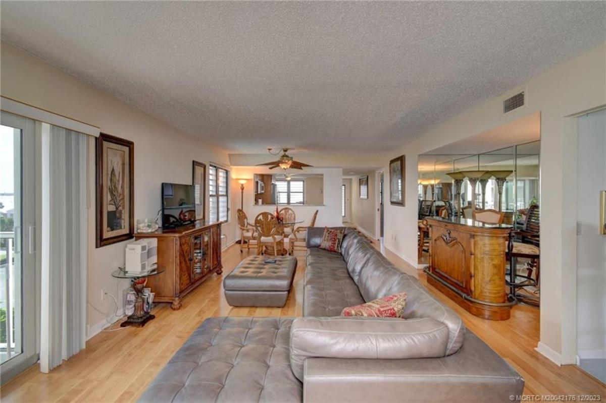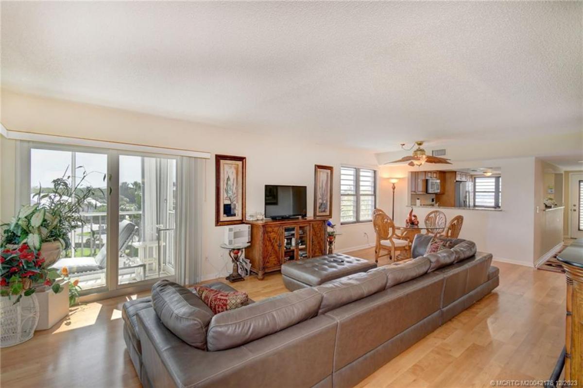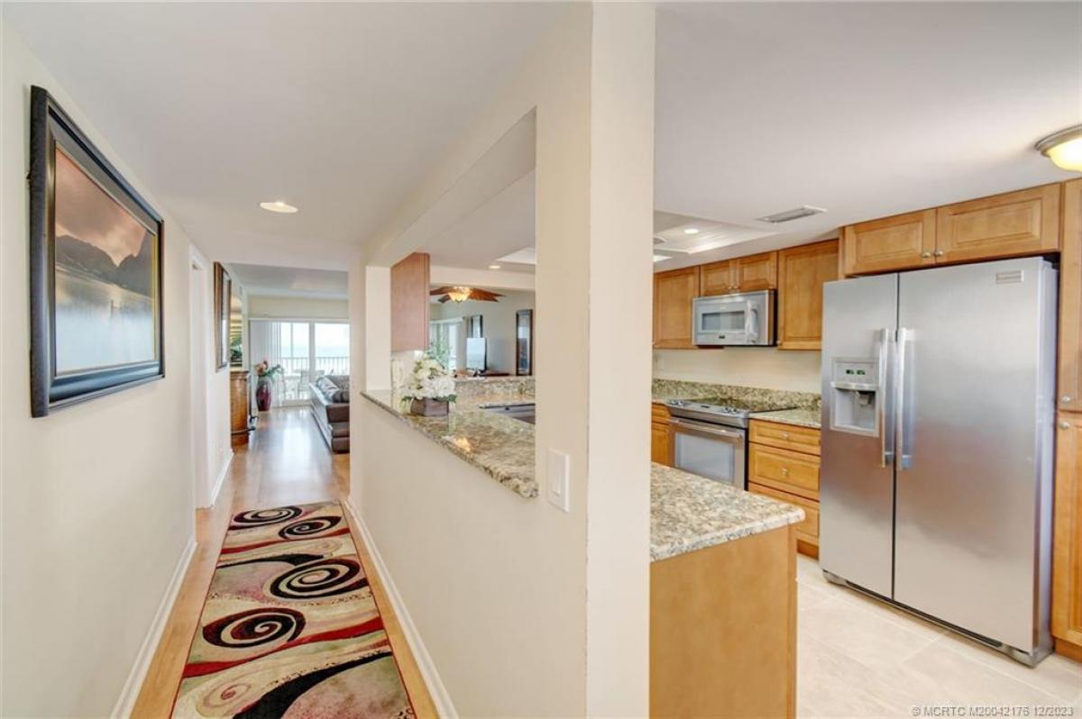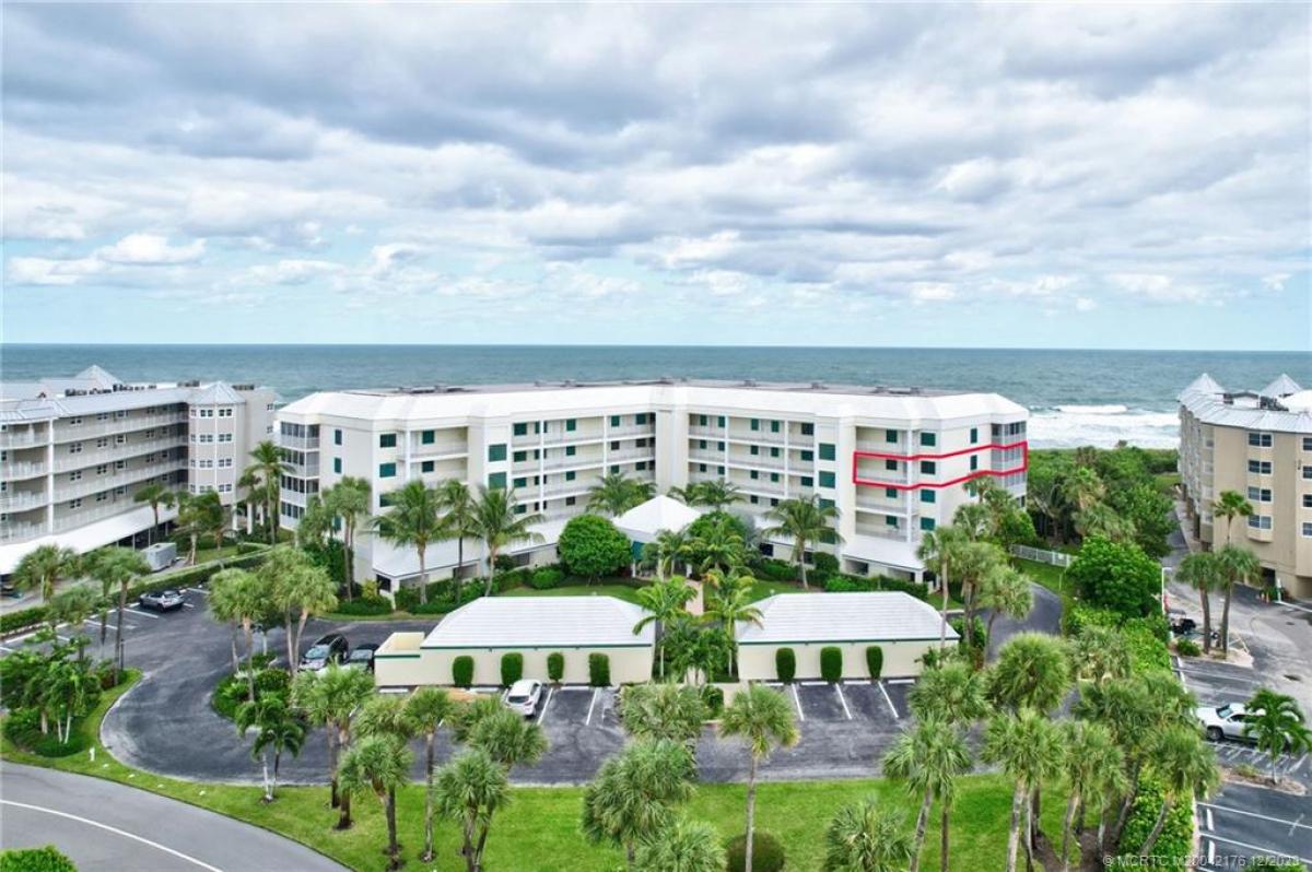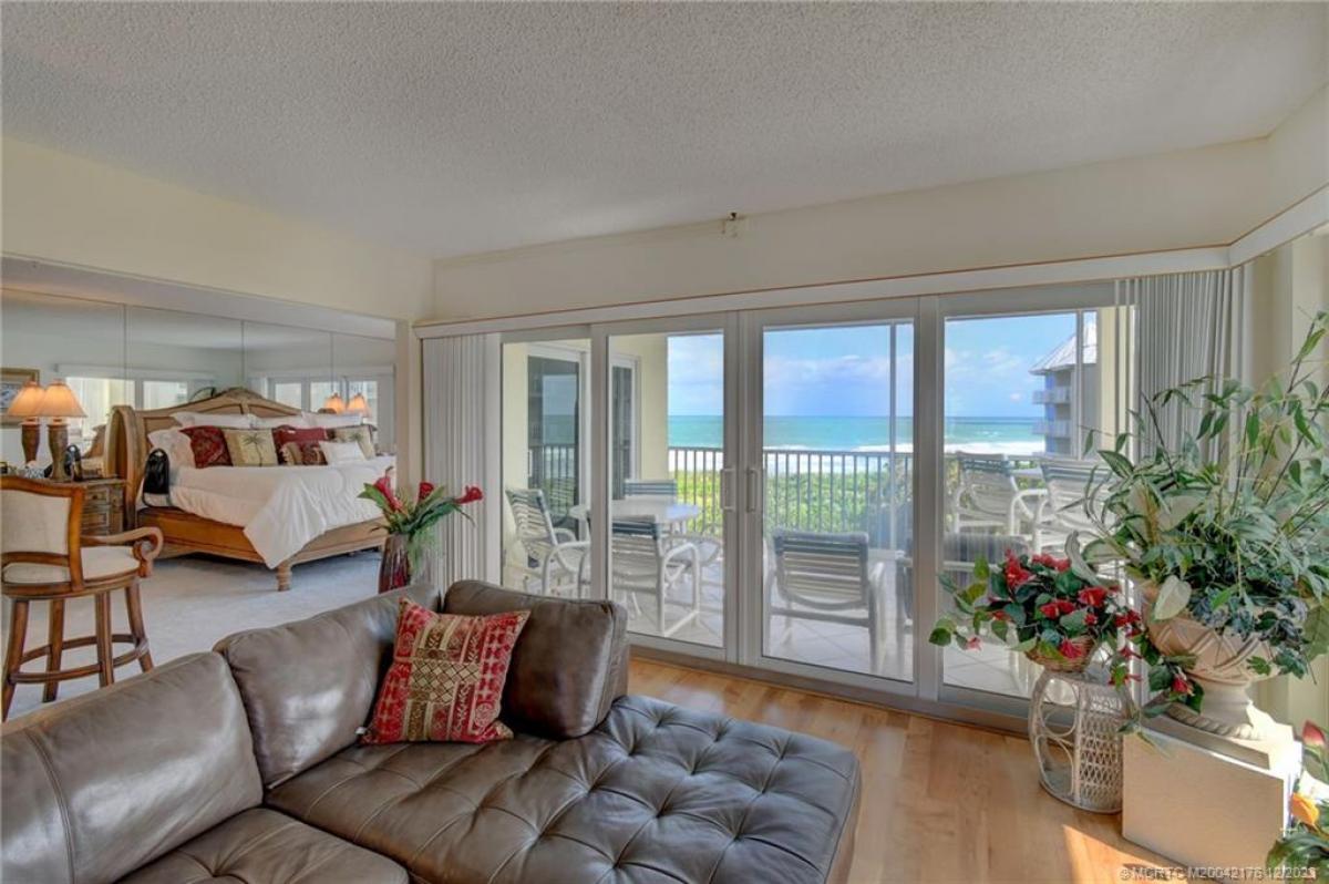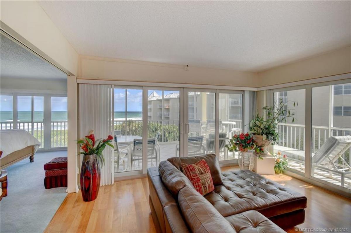 Available February 15, 2024 through the rest of season. Wide oceanfront views from this end unit condominium, is located on Hutchinson Island’s Marriott Resort. Beautiful and spacious, the property has many slider doors from the living room and main bedroom opening to the oversized L-shaped balcony. Remodeled kitchen boasts loads of storage, upgraded stainless steel appliances, convenient desk area and more views of the Atlantic Ocean. Plantation House is a charming complex with only 40 units, heated pool, bocce ball court, private beach access and under cover assigned parking space with large storage closet.