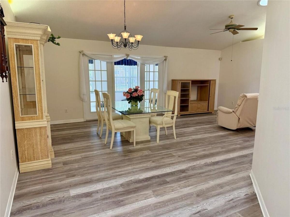 This beautifully maintained home offers a desirable split floor plan with 3 bedrooms, providing added privacy and comfort. Enjoy multiple living spaces, including a bright Florida room and a screened-in lanaimdash;perfect for relaxing or entertaining year-round. The large kitchen offers ample counter and cabinet space, ideal for cooking and gathering with a dining table included. The home also features a 2-car garage with an additional refrigerator for extra storage. Some furnishings are included, such as a dining room set, a primary bedroom set, a TV stand, two recliners as well as a home office set up. However, if you prefer to bring your own furniture, the home can be rented unfurnished as well. Convenient, comfortable, and ready for you to move in!