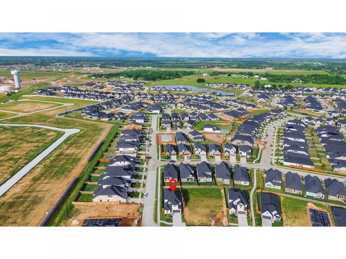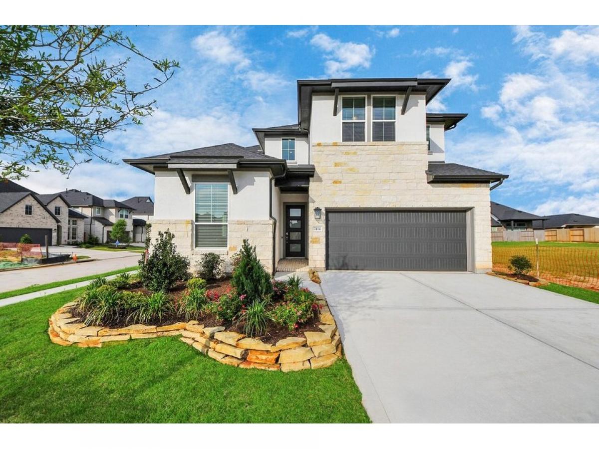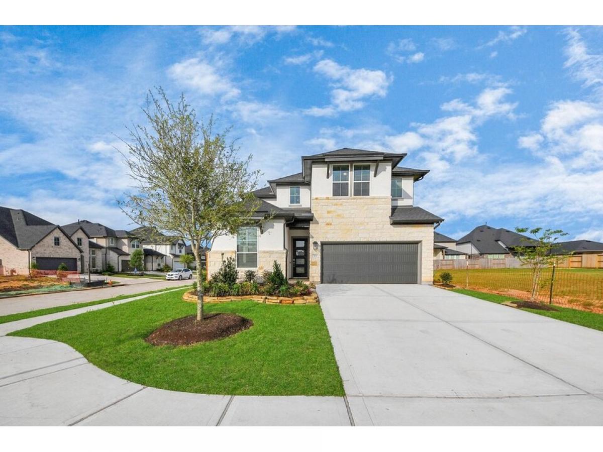 NEVER LIVED IN HOUSE - This stunning two-story home combines contemporary design with warm, inviting character. Its elegant stucco and stone exterior is highlighted by a grand 8-foot entry door. Step into a spacious foyer with soaring 20-foot ceilings that immediately create a sense of openness and grandeur. The open-concept main floor seamlessly connects the living room, dining area, and kitchen. The living area is enhanced by oversized windows that flood the space with natural light, and a striking 20-foot electric fireplace that adds architectural interest. A view from the upstairs game room to the living area below adds to the homersquo;s spacious and connected feel. The layout includes a well-appointed primary suite and one secondary bedroom on the main floor, with two additional bedrooms upstairs. Enjoy access to a host of premier amenities including a recreation center, fitness center, resort-style pool, scenic trails, a central playground, and a sparkling lake.