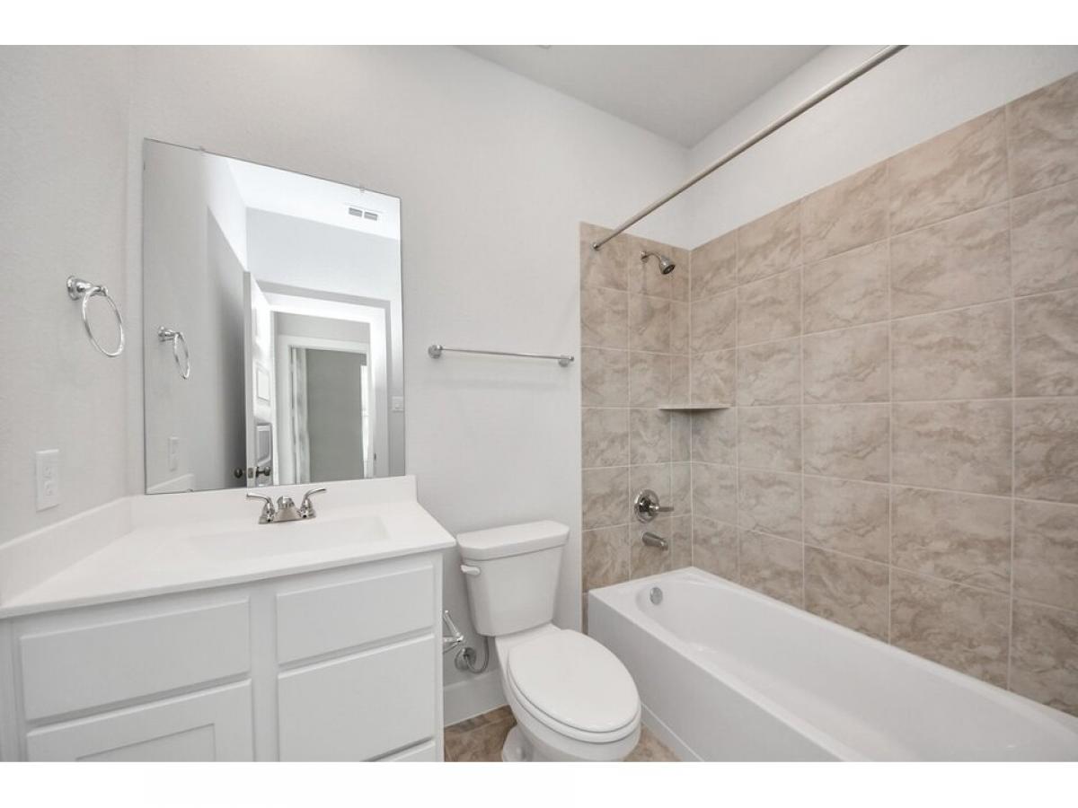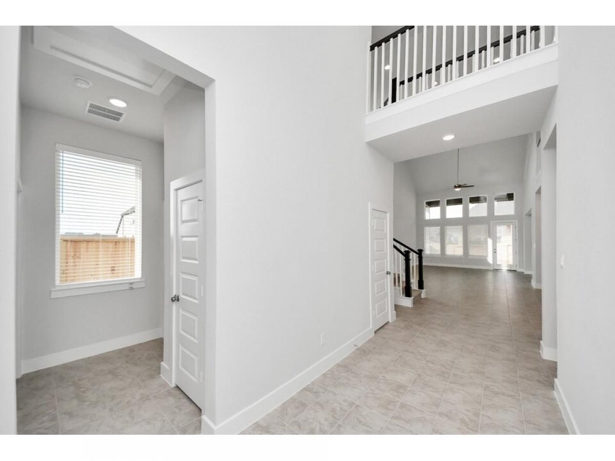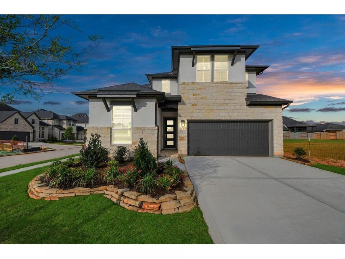 NEVER LIVED IN HOUSE - This stunning two-story home combines contemporary design with warm, inviting character. Its elegant stucco and stone exterior is highlighted by a grand 8-foot entry door. Step into a spacious foyer with soaring 20-foot ceilings that immediately create a sense of openness and grandeur. The open-concept main floor seamlessly connects the living room, dining area, and kitchen. The living area is enhanced by oversized windows that flood the space with natural light, and a striking 20-foot electric fireplace that adds architectural interest. A view from the upstairs game room to the living area below adds to the homersquo;s spacious and connected feel. The layout includes a well-appointed primary suite and one secondary bedroom on the main floor, with two additional bedrooms upstairs. Enjoy access to a host of premier amenities including a recreation center, fitness center, resort-style pool, scenic trails, a central playground, and a sparkling lake.