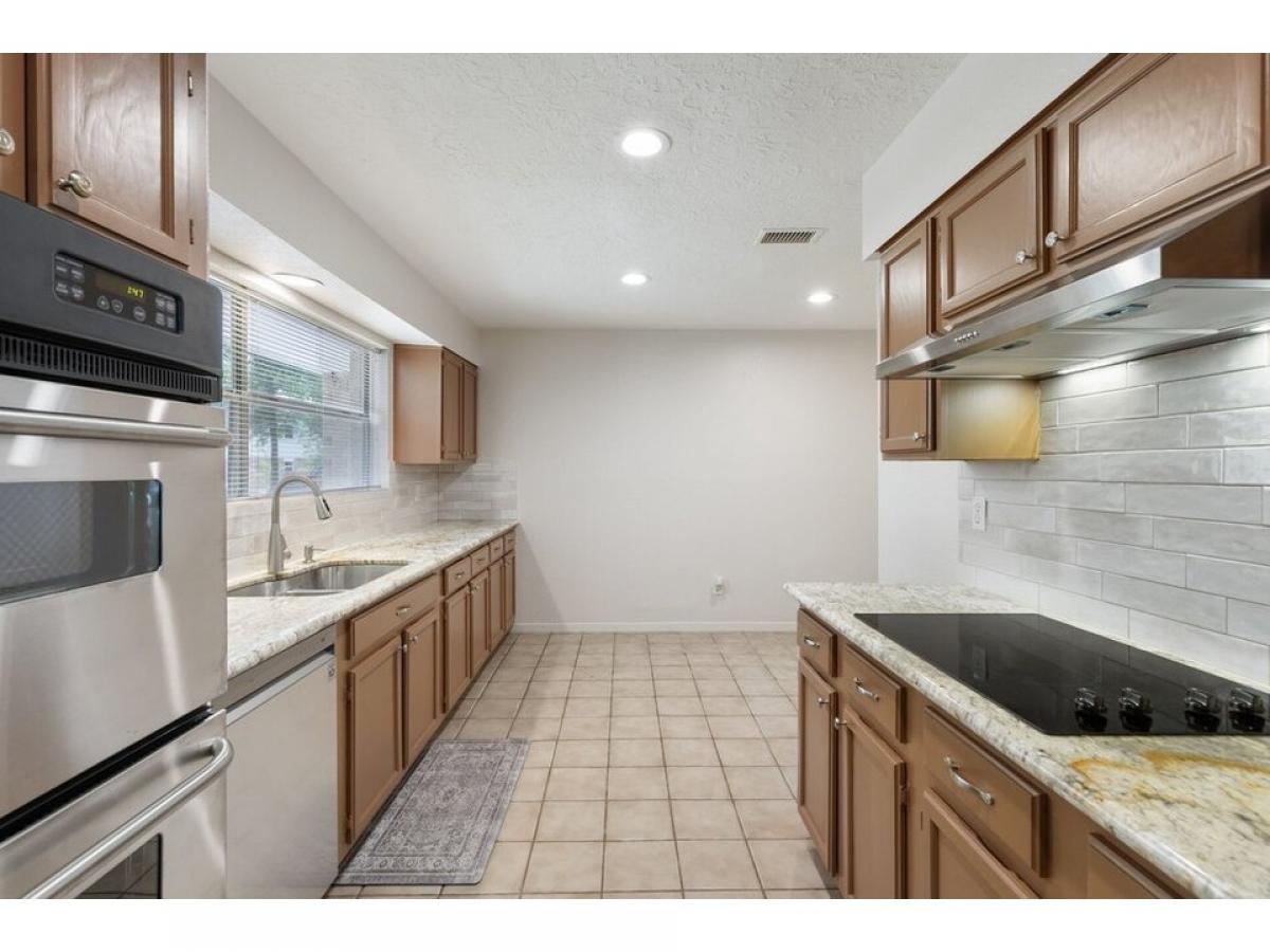 Welcome to this beautifully updated 3-bedroom, 2-bath home nestled in a quiet, tree-lined neighborhood at the front of The Woodlands. Thoughtfully designed with both comfort and style in mind, the home features new luxury vinyl flooring throughout the living, dining, and bedroom areas, creating a seamless and modern look. The spacious living area is centered around a beautiful fireplace, perfect for cozy evenings and relaxed gatherings. The kitchen is a standout with stunning granite countertops and a brand-new double ovenmdash;ideal for home chefs and entertainers alike. The large primary suite offers a peaceful retreat, complete with a generous sitting area or office nook and two closets. Additional features include a two-car garage with durable epoxy flooring and a private backyard with no rear neighbors, surrounded by mature trees. With easy access to I-45, top-rated schools, and premier shopping and dining, this home is the perfect blend of warmth, comfort, and convenience.