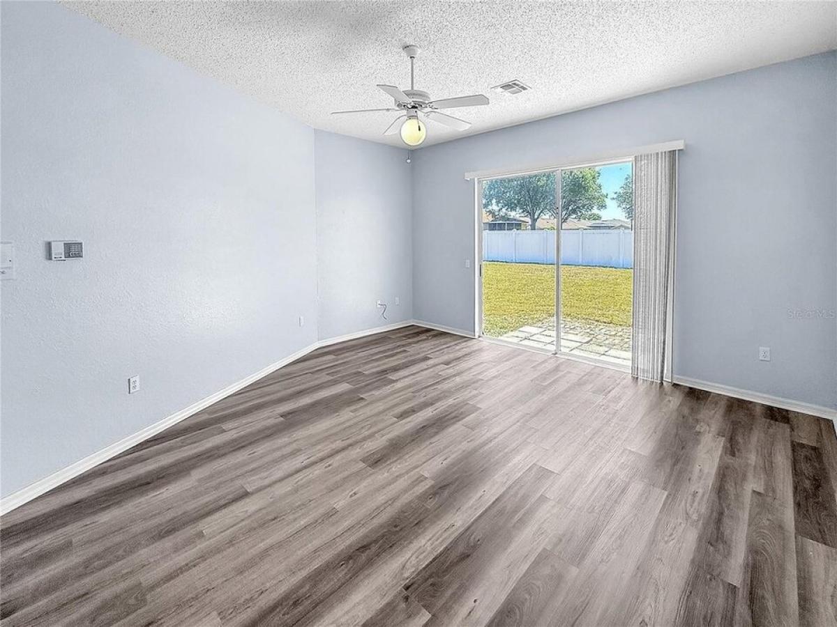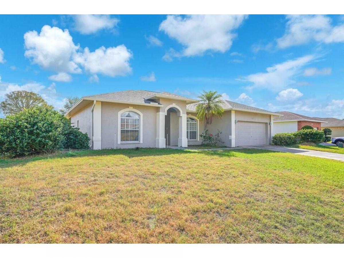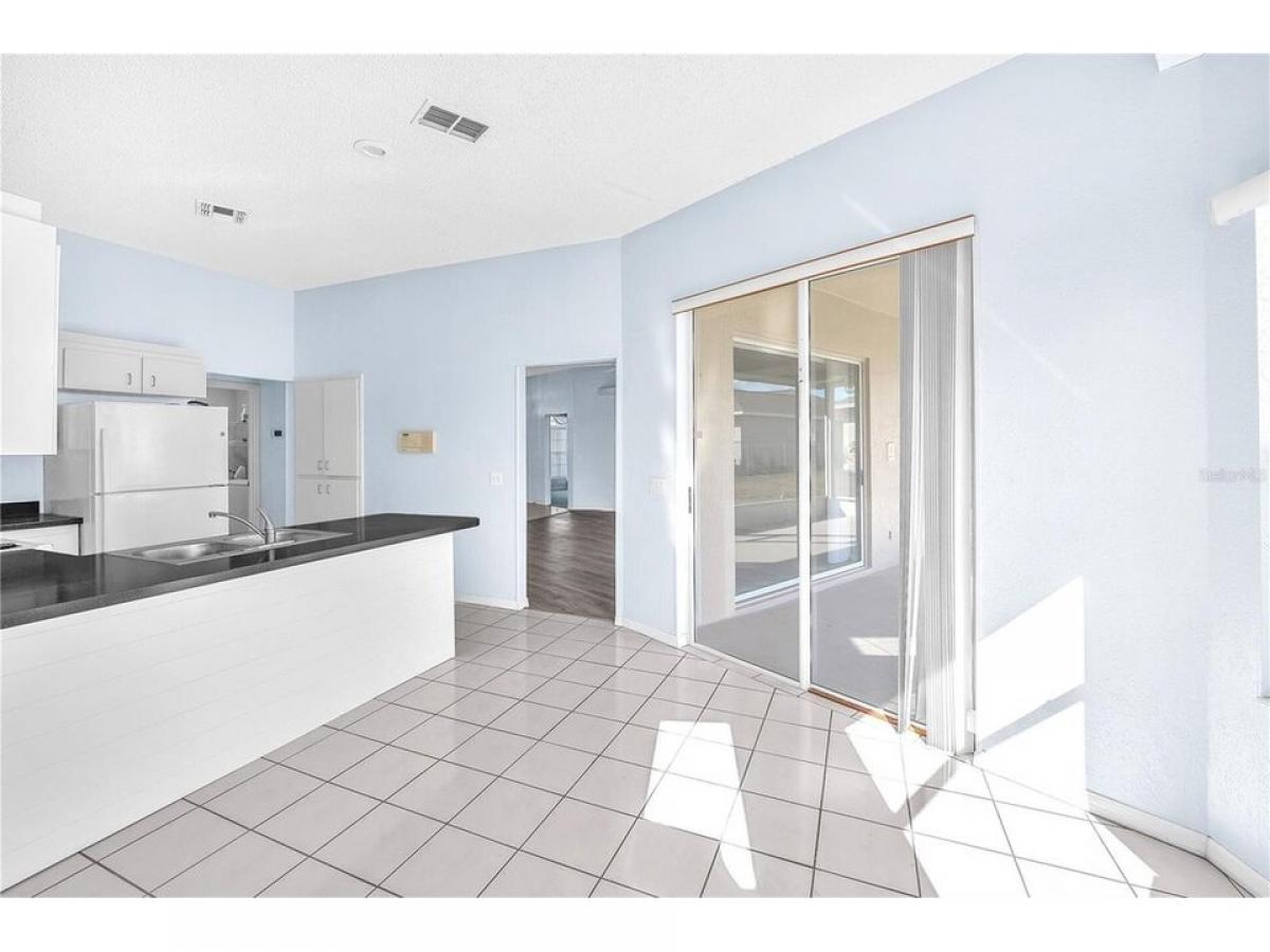 Welcome Home! This 3-bedroom, 2-bathroom home features a spacious open floor plan with high ceilings and wood-look flooring in the living and dining areas. Large sliding glass doors provide ample natural light and lead to a screened-in lanai, perfect for enjoying Floridarsquo;s outdoor living. The kitchen includes white cabinetry, black countertops, a breakfast bar, and a cozy nook with large windows overlooking the backyard. The primary suite offers backyard views, a built-in closet, and an en-suite bathroom with a soaking tub, separate shower, and dual sinks. The additional bedrooms are well-sized with ceiling fans and ample closet space. The second full bathroom includes a tub/shower combo. A separate laundry room with a washer and dryer provides added convenience, and the two-car garage offers plenty of parking and storage. The spacious backyard is ideal for outdoor activities. Pets are allowed. Located in a quiet neighborhood, this home is minutes from shopping, dining, parks, and schools. Schedule your showing today!