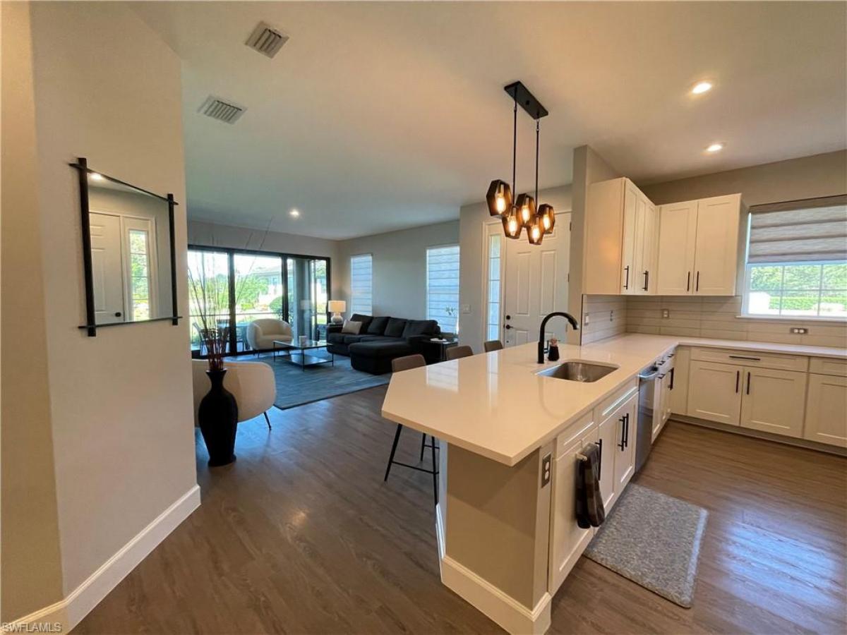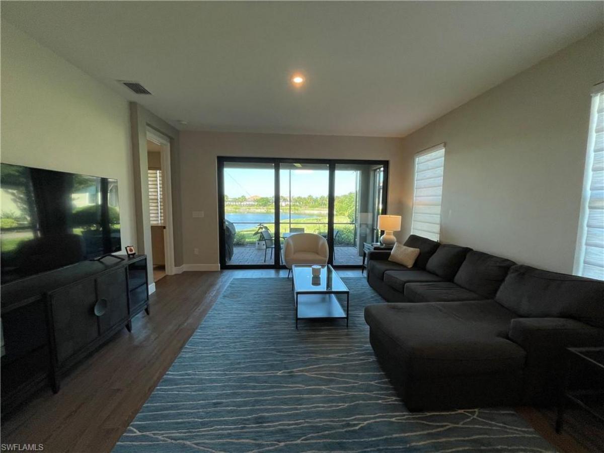 Waterfront 2BR + Den Villa for Rent – Esplanade at Hacienda LakesEnjoy resort-style living in this beautifully maintained 2020 attached villa, perfectly positioned on a premium waterfront lot with room for a private pool. Located in an X flood zone with full hurricane-impact doors and windows, this home offers peace of mind and worry-free living.The spacious split floor plan features two bedrooms plus a den and two full baths. The chef-inspired kitchen comes with an oversized eat-in island, quartz countertops, solid wood cabinetry, stainless steel appliances, and a stylish glass tile backsplash. Engineered vinyl plank flooring flows throughout the main living spaces, complemented by solid wood doors and custom window treatments.Relax or entertain on the extended screened lanai, pre-plumbed for natural gas, while enjoying serene long lake views.Esplanade at Hacienda Lakes offers resort-style amenities, including a pool, fitness center, pickleball, tennis, bocce, dining options, dog park, playground, and community events. Low HOA fees make this villa the perfect rental for comfortable Naples living.