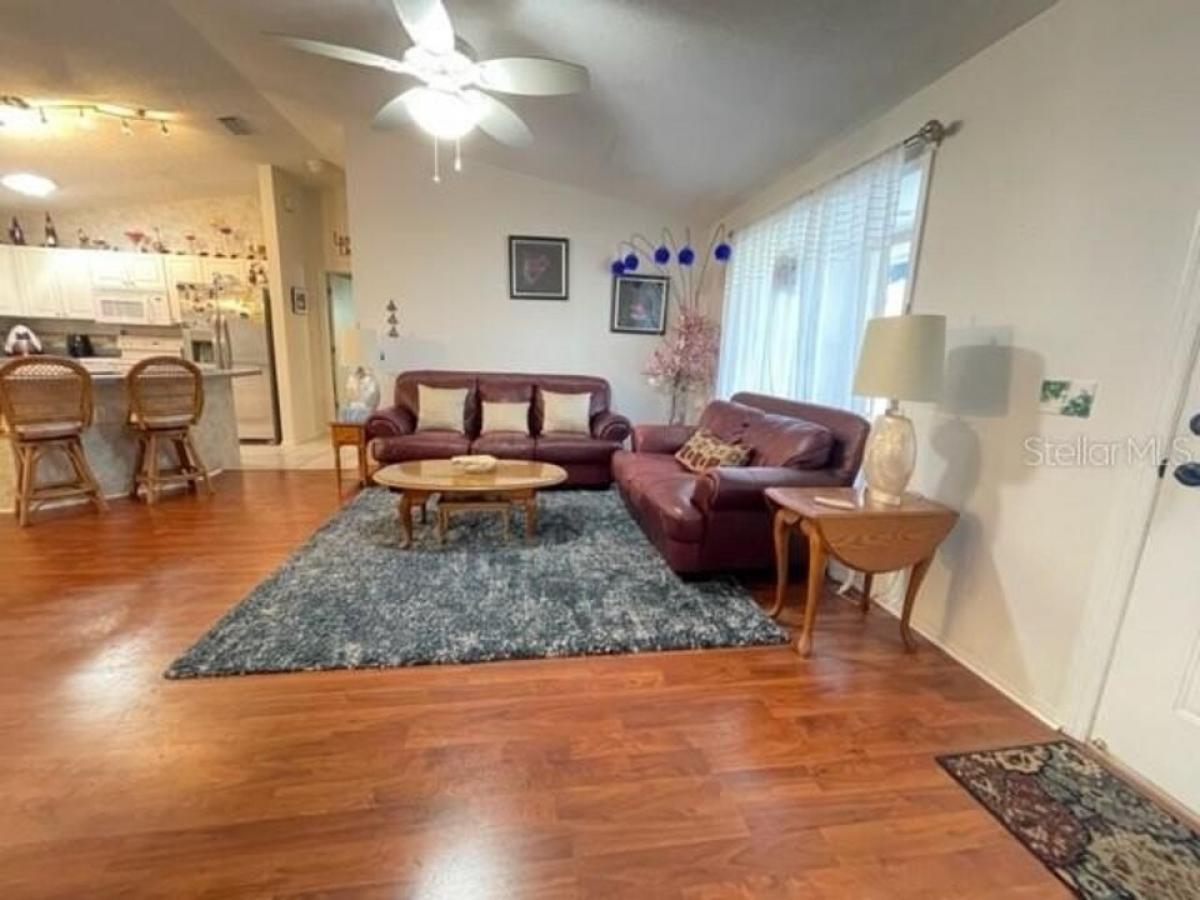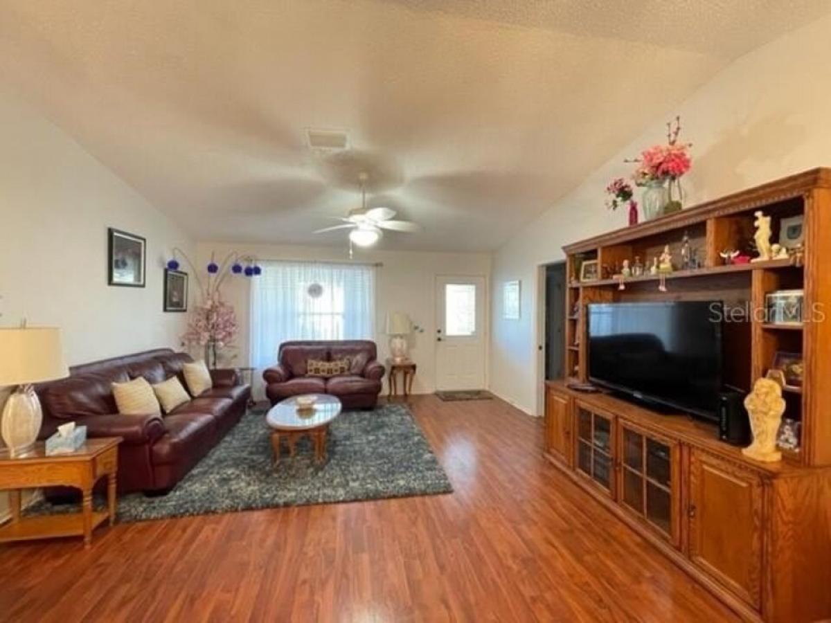 ONE-OF-A-KIND 3 bedroom, 2 bath, 2 car garage, 2 golf carts Seasonal rental home located in the Village of Rio Ranchero North. This rental home sits on the seventh hole of the De La Vista Golf Course, and it is perfect for enjoying the outdoors with its 750 Sq Ft screened-in lanai with a separate birdcage patio providing ample room for a grill and patio furniture. The entry door is under a covered front entrance perfect for sitting out on a beautiful Florida day. When you enter the home, you will immediately feel welcome by the warmth of the combined living-dining area with laminated floors. The bedrooms have carpet and the kitchen and bathrooms have tile floors. The master bedroom has a large walk-in closet, a walk-in shower, a dual sink, and a sliding door providing easy access to the lanai. The first guest bedroom has two full-sized beds, a desk, and a TV. The third guest bedroom has a queen bed, a dresser, and a desk. This property is located 1.6 miles from Tierra Del Sol Country Club,1.4 miles from De La Vista Executive Golf Course, 1.3 miles from Spanish Springs Town Square, and 2.7 miles from Lake Sumter Landing, just to mention a few. Additional Fees: $50 Villages ID Fee Check-In/Out Details: Check-in 4:00 pm Check-out 11:00 am Cleaning Fees: $160