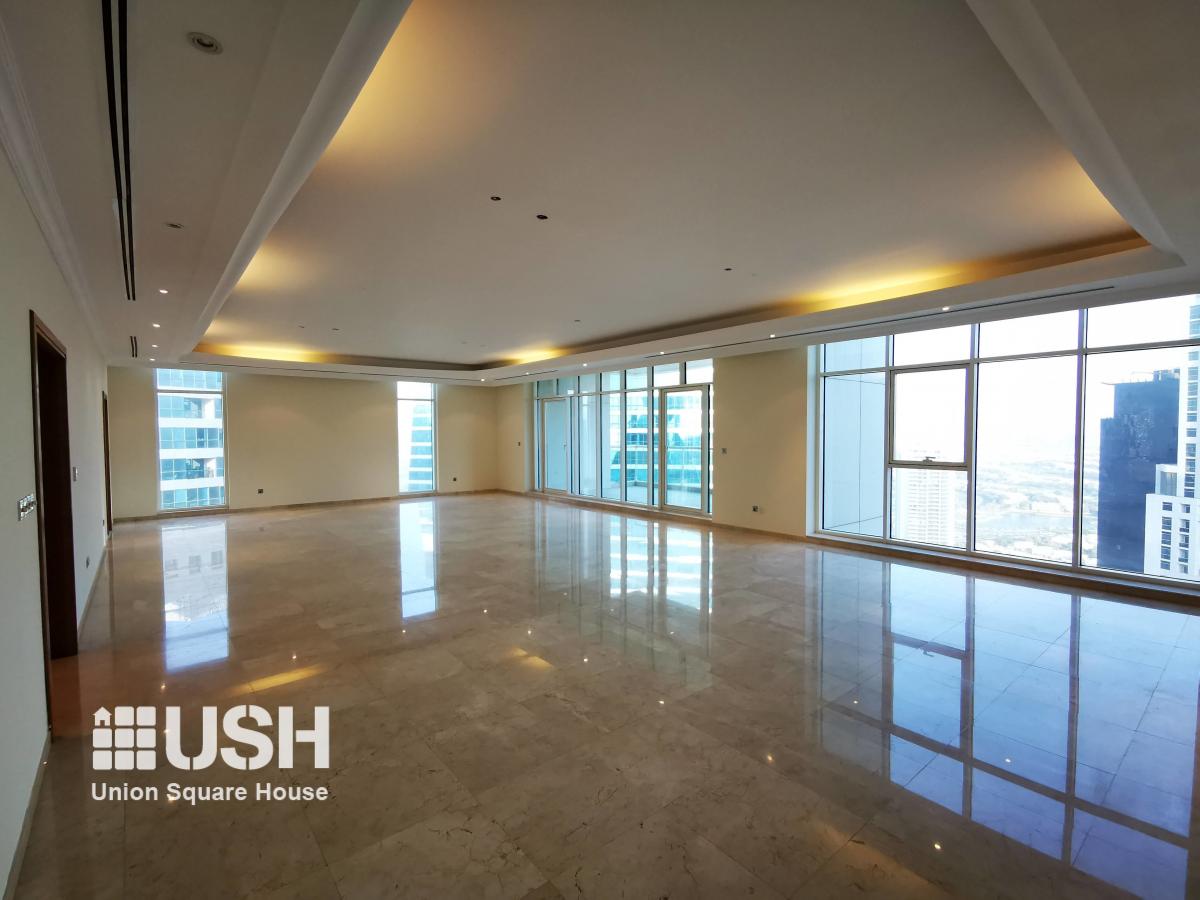 Union Square House Real Estate Brokers is proud to introduce this unique penthouse in Jumeirah Lake Towers, Al Seef 2 Tower. The apartment’s total area is 5,540 sq ft plus 141 sq ft basement storage room in Basement 1. The unit occupies half a floor. The entire floor surface in the penthouse is marble except for the kitchen and maid’s room.Property Features:* 5 en-suite bedrooms* Very Large eat-in-kitchen with a kitchen island* Large drawing room (accommodates 3 separate sitting areas and a large dining table)* Living Room (TV Room)* Ensuite Maid’s room* Laundry room* Two guest powder rooms (one very large with 3 washing basins and a toilet and another one with one washing basin and a toilet)* Storage room within the apartment.*Large entry vestibule* 2 large balconies: one facing Montgomery Golf Club and Emirates Golf Club, and the other facing Dubai Marina* 5 covered parking spaces in building's first basement (listed on the title deed)* Storage room 141 sq ft in building’s first basementThe penthouse has amazing views:North: Emirates Golf Club & SZR facing Burj Al Arab,West: Dubai Yacht Marina & Infinity Tower,East: JLT and Montgomery Golf Club.Please feel free to contact me for any further information and viewings on:Hitesh Babani - 0558790033Common facilities include: a fully equipped Gym, heated swimming pool, sauna rooms, children play room, and multi function party room.