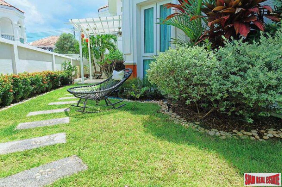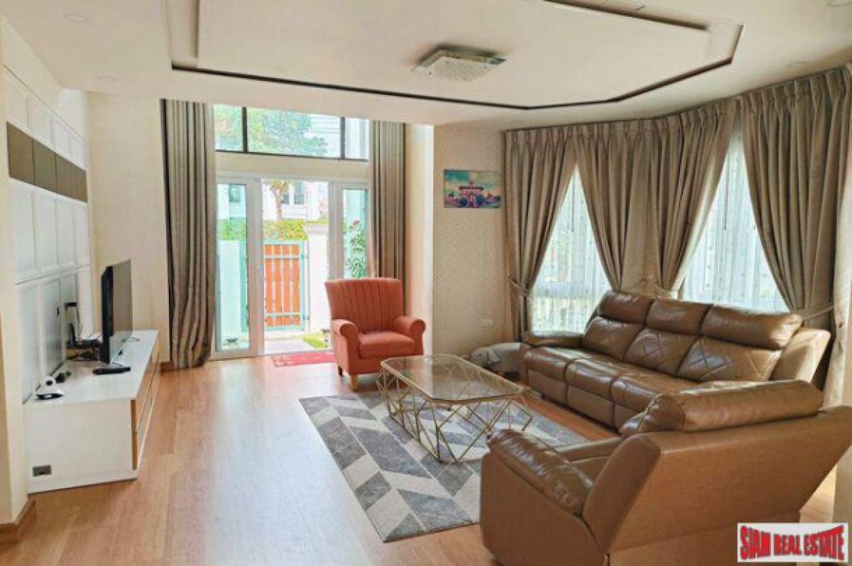 This is a new two storey house for rent in a secure development. The house is designed in a Sino-style and has four bedrooms and three bathrooms. On the first floor is the living area with high ceilings and elegant chandelier. There is a dining area, a big fully equipped kitchen bathroom and a bedroom.There are three bedrooms on the second floor. The master bedroom faces the front with a garden view and it has an ensuite bathroom. Two other bedrooms share a bathroom. The house is fully furnished and includes a washing machine.