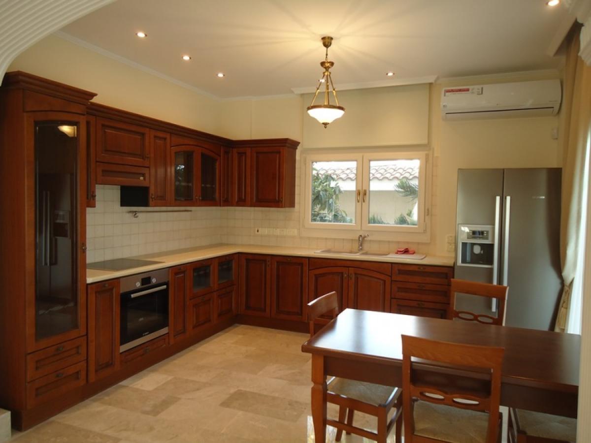 A spacious villa in Limassol, located in the developed area of Agios Tychonas,Limassol. The property has a landscaped area with a garden and a swimming pool.House area 260 sq. m., total covered area - 460 sq. + 90 sq.m. terraces and balconies, the layout includes 4 bedrooms, salon, 3 bathrooms, guest toilet, kitchen with dining room, laundry room, large terrace. There is also an office. Additional kitchen in the basement. One of the bedrooms is combined with a bathroom. From the dining room and lounge access to the terrace overlooking the Mediterranean Sea. There is a guest house with a bedroom, kitchen, bathroom.There is furniture and household appliances, fireplace and heating system, air conditioning system; barbecue area, parking for 2 cars (70 sq.m.), satellite TV with Russian channels, video fixation and alarm, video surveillance system, LED ceiling lighting, oak parquet floors, heated floors. Pool. Huge mature garden with computer watering system.