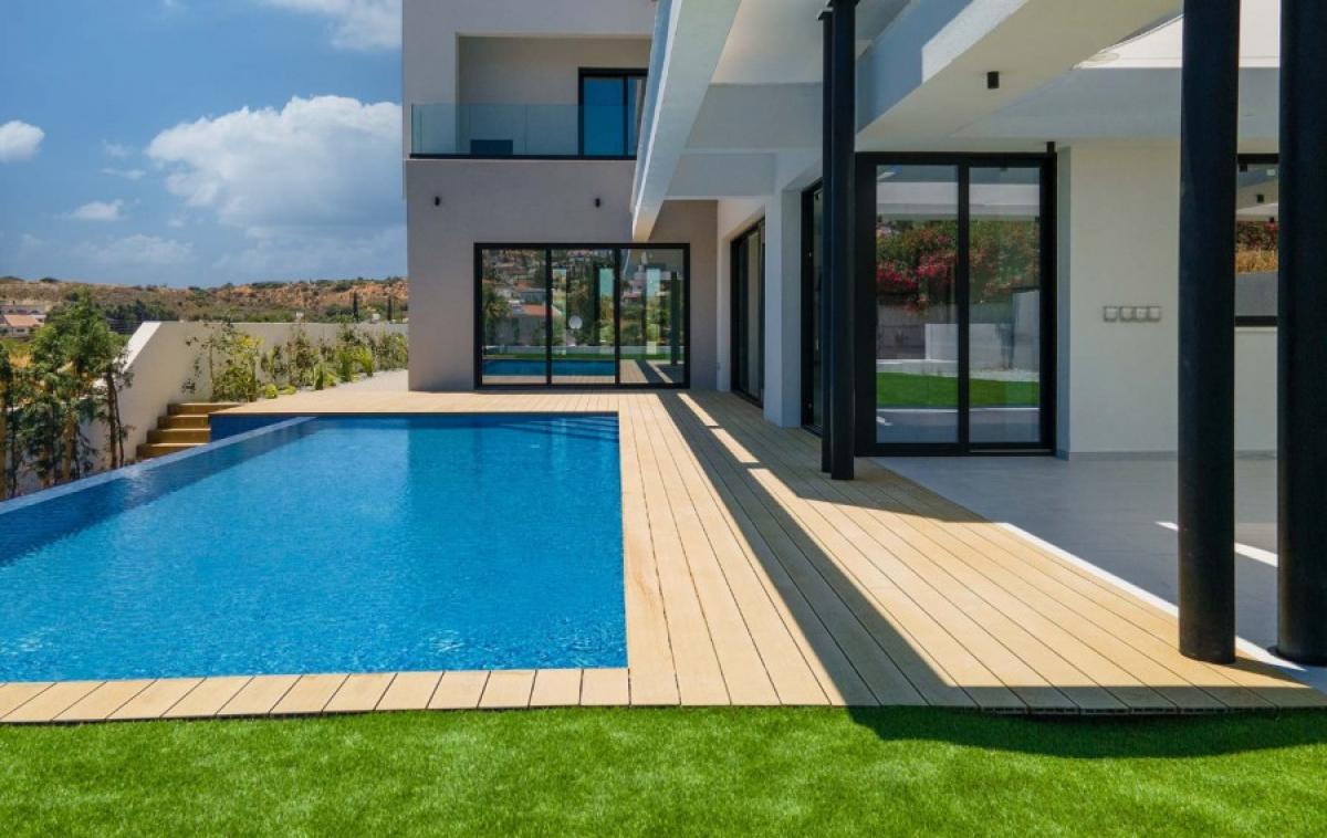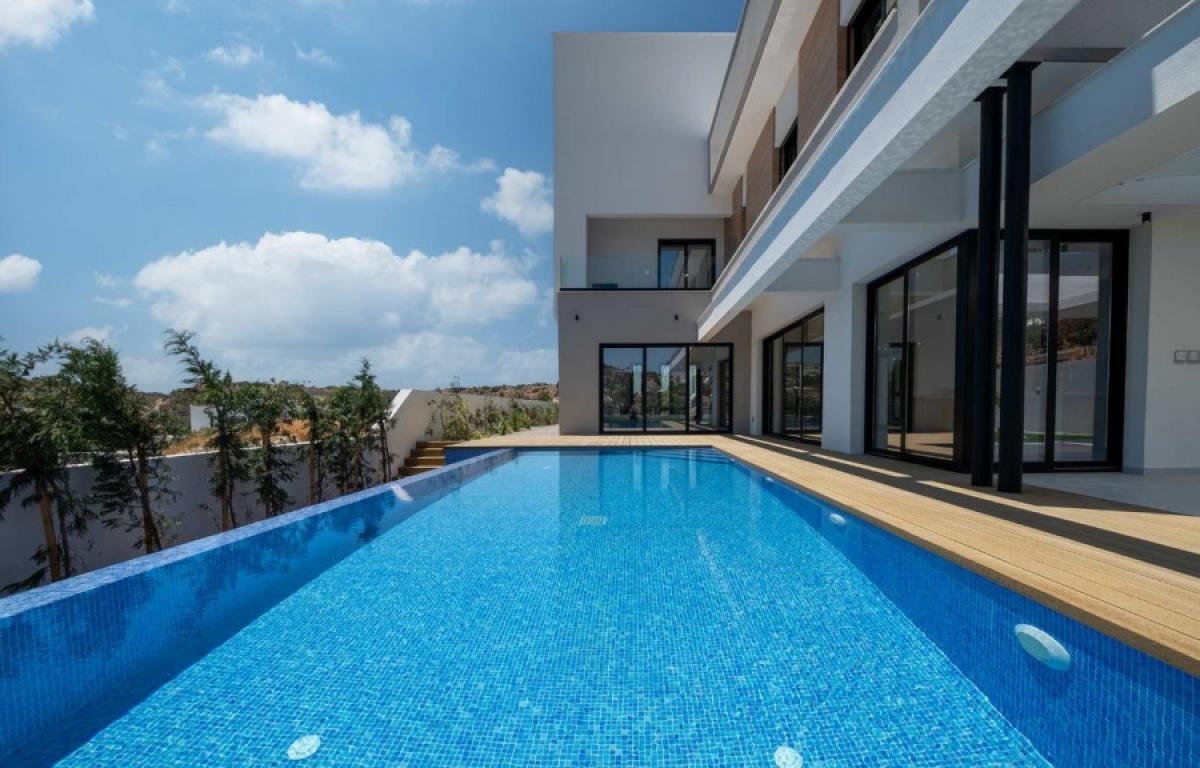 Modern 4+1 bedroom detached villa for sale in Agios Tychonas, Limassol. It offers beautiful and stylish living in Limassol city. Perfectly located villa offers a prestigious & quiet neighborhood with easy access to all amenities and highway. The property is split over three levels. The ground floor hosts an open plan space with a kitchen, living, and dining. There is also a guest wc and outdoor area covering a swimming pool, covered patio, garden, covered parking, CCTV and alarm. The first floor has 4 bedrooms including a master en suite and walking wardrobe, and the rest of the bedrooms with en suite. The top floor has the maid's quarters with a storage room and roof garden.A
