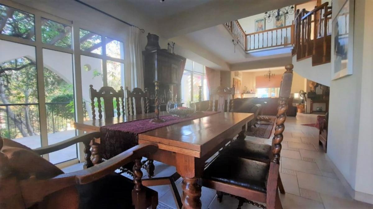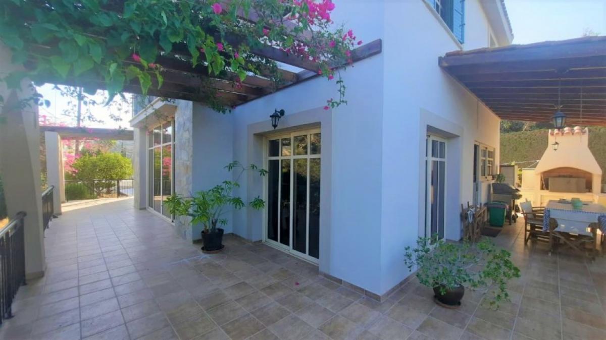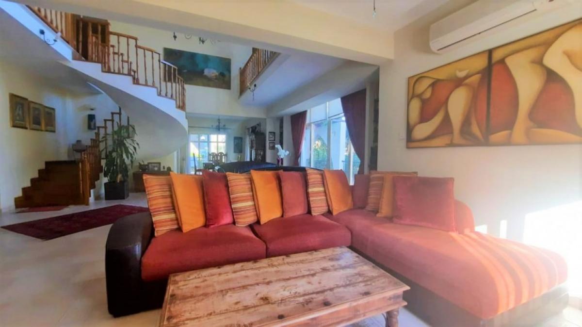 A charming Mediterranean style property built on two levels and consists of a very spacious open plan living/sitting room with a fireplace, a separate kitchen and dining area leading out to a large patio, bbq area and mature gardens, a study/guest room with en suite bathroom, laundry room on the ground floor. The wooden stairwell leading to the upstairs to the first floor which comprises of 3 double bedroom with fitted wardrobes and family bathroom, the master bedroom includes en-suite facilities. Elegant architecture and arches gives to the property beautiful layouts and spacious areas. The house close to all amenities: supermarkets, banks, schools & easy access to the highway and sea shore of Limassol city.