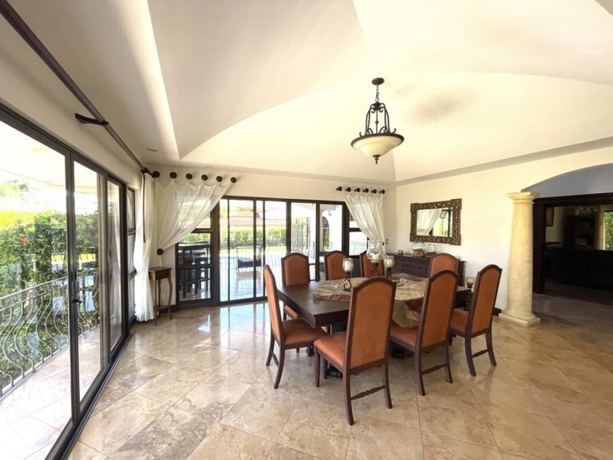 For sale in San Rafael de Alajuela, just a short 5-minute drive from Intel or San Antonio de Belen, is a luxurious house with top-notch finishes. Boasting a 1200m2 lot and a spacious 450m2 of one-level construction, this property features a private pool, three bedrooms, and a master bedroom equipped with a walk-in closet and a spa-like bathroom featuring a jacuzzi, shower, marble countertops, and breathtaking views of the garden and pool. The two additional bedrooms come with their own bathroom and ample closet space, with sliding doors leading to the terrace. The elegant dining room opens up to the pool area and boasts vaulted ceilings, illuminated wall niches, beautiful woodwork, and stunning decor by Antonio Doninelli. The porcelain flooring and TV room are just a few of the many highlights of this home, which also includes a large kitchen with an island and granite countertops, a laundry room, a maid's quarters with a bathroom, and a 2-car garage. The property is located in a gated community with high-end homes and 24/7 security