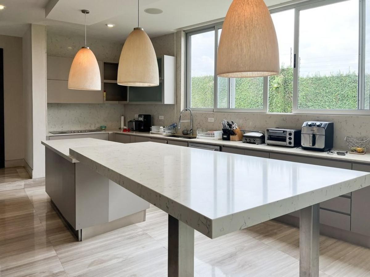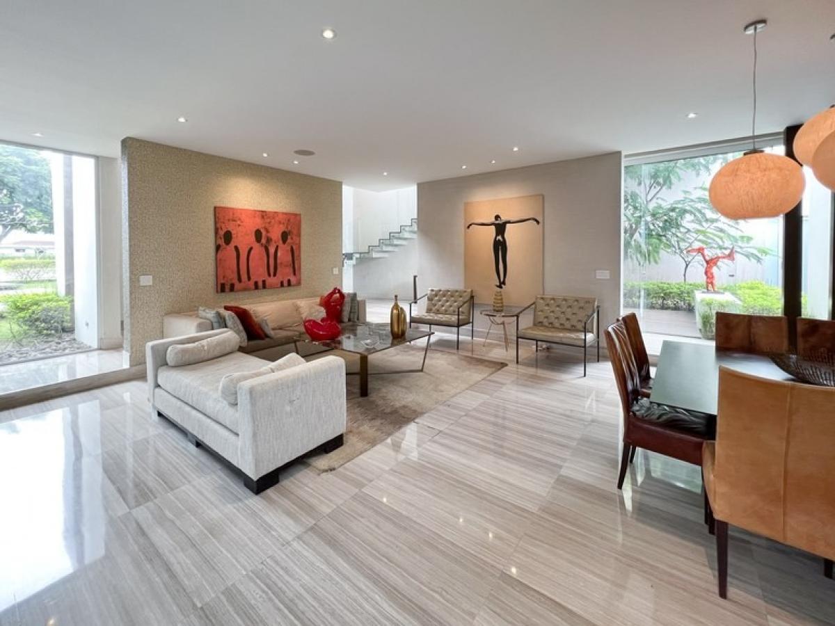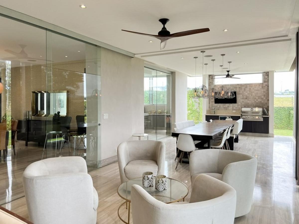 4 bedrooms | 3.5 bathrooms | office | 3 indoor parking + 3 outdoor parking Spectacular 2-story house with natural lighting, ample social spaces and lots of freshness. Located in Hacienda Espinal in Alajuela. Designed by the visionary Costa Rican architect Juan Robles, this residence is the perfect blend of nature and elegance. This property stands out for its social areas. It has two living rooms, an internal terrace with large windows and a large bar with a wine rack, perfect for enjoying a great evening with friends.