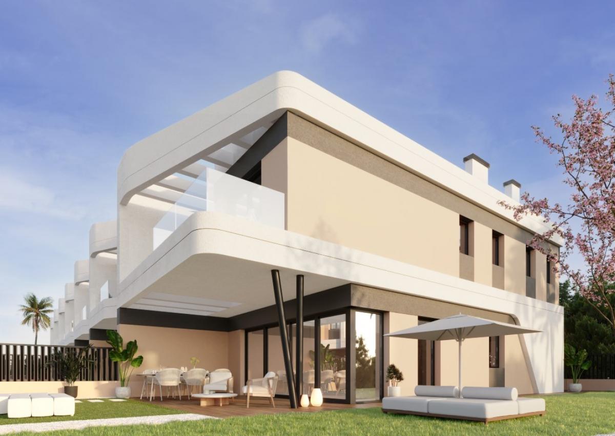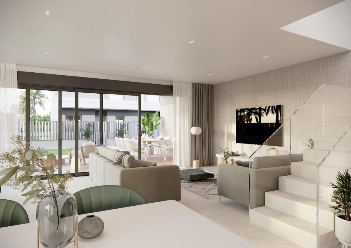 Discover your dream home in the heart of Alicante's enchanting landscape. Nestled in the best area of San Juan, just a leisurely 4-minute drive from the sun-kissed shores, you'll find a small, exclusive enclave of 10 townhouses overlooking the prestigious Alicante Golf course.These townhouses are a harmonious blend of modern comfort and tranquil living. Each residence boasts 4 bedrooms, 2 bathrooms, a guest bathroom, and a utility room, providing ample space for you and your loved ones. The generous terraces and garden areas invite you to savor the Mediterranean climate and create cherished memories.Step inside, and you'll find a fully equipped fitted kitchen, complete with an induction hob, extractor fan, oven, and microwave—a culinary haven for aspiring chefs. The homes are thoughtfully designed with aero-thermal air conditioning and heating systems, ensuring your year-round comfort. Fitted wardrobes in the bedrooms add convenience and style to your daily routine, while solar panels connect directly to the electric panel, reflecting a commitment to energy efficiency.But it's not just about the interiors. These townhouses come with a basement featuring an open-air patio, offering additional space for your creative pursuits. Plus, you'll have the luxury of two garage parking spaces.The community itself is a gem, boasting a refreshing pool and beautifully landscaped gardens that provide a tranquil retreat for residents.For golf enthusiasts, Alicante Golf, designed by the legendary Severiano Ballesteros, is just moments away—a true golfer's paradise with 18 holes, a golf academy, and a delightful restaurant.Beyond the green, you'll find a wealth of amenities in the area, including restaurants, supermarkets, efficient public transport options (including a tram service), a well-connected road network, the Hospital de San Juan, MediterrA?neo Tenis a?? Paddle club, children's parks, schools, and more. The convenience of modern living is at your doorstep.And here's the icing on the cake—the personalization policy. Choose from a range of options for flooring, tiling, and kitchen units to make your new home uniquely yours.Come and be a part of this exquisite community, where every detail has been carefully considered to offer you the perfect blend of comfort, convenience, and style. Your dream home awaits in the picturesque surroundings of Alicante Golf, where life's finest pleasures are at your fingertips.