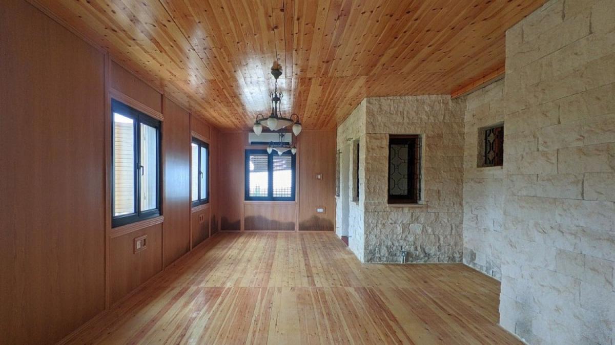 Two-storey detached house arranged over a semi-basement and ground floor level. . The semi-basement level is arranged over a living room, a dining room, a kitchen and a laundry room and an additional living room with a fireplace, a guest bathroom and two additional rooms. The ground floor is comprised of an entrance lobby, an office, a bedroom with an en-suite walk in closet and a bathroom and a fireplace. It also consists of a covered garage area and a boiler room. The house benefits from central heating and A/C split units. The property enjoys an unobstructed green view of the wider area.