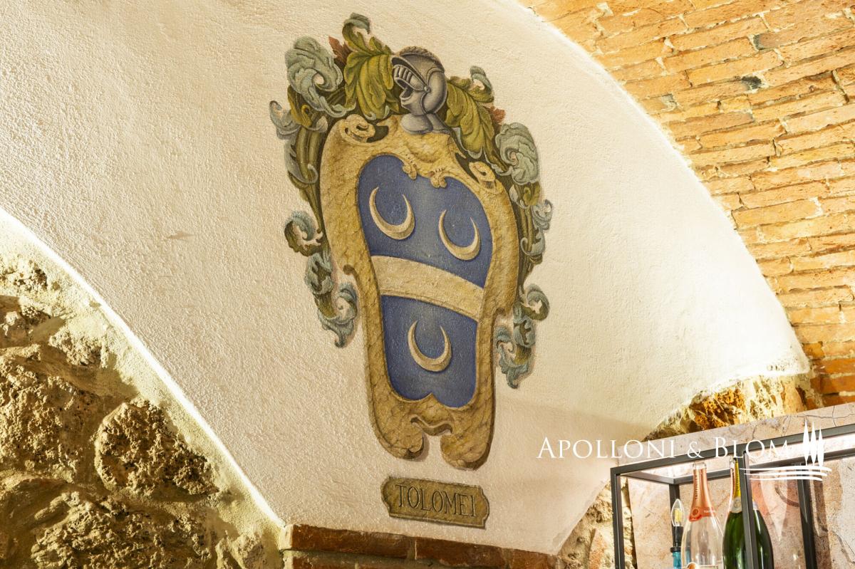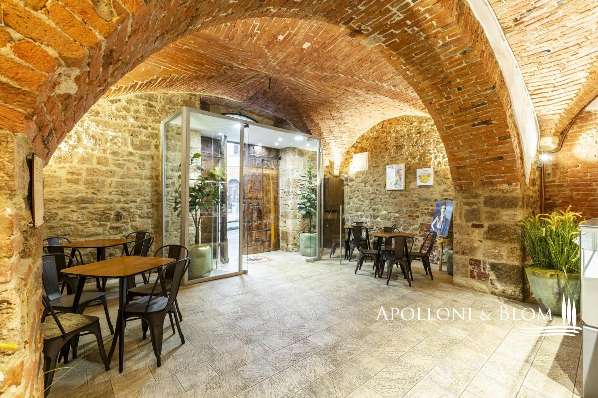 A historical journey across four levels, courtyard garden, residences with terraces, shop, cellar, garage, for sale in the borgo of Asciano, Siena. In the heart of the historic centre of Asciano, a charming village in the Crete Senesi just 25 minutes south of Siena, overlooking the basilica and fountain in the main square, stands one of the oldest medieval palaces in the town, built in the 1300s as the residence of an influential Sienese aristocratic family. An authentic period residence covering a total of 792 square metres/8,525 sq ft spread over four floors, retaining all its the travertine architecture of the main façade, the late Gothic windows with pointed arches, the cross vaults on the ground floor and the exposed chestnut beams and terracotta tiles on the ceilings of the upper floors. The property stands out for the extraordinary versatility of its spaces and its four independent entrances, a feature that makes it ideal both as a prestigious private residence, to be customised according to a high-end contemporary design, and as a charming boutique hotel in the heart of authentic Tuscany. The current layout of four apartments, combined with retail and ancillary spaces, allows for a high-profile project. In overall good condition, with renovations carried out in 1980 and 2014 for the shop area and one apartment, it offers large windows, high ceilings and bright rooms perfect for a flexible and functional reconfiguration, enhancing each floor with tailor-made solutions. The ground floor houses a retail space currently used as an ice cream shop, consisting of a 78 sq m/840 sq ft open-plan area with brick vaulted ceilings, along with a pantry, a hallway, two bathrooms and a utility room. The floor is completed by a garage with striking cross vaults, and a single-entrance storage room connected to two cellar rooms in the basement. The entrance to the apartments is also independent, featuring a solid wood door and internal stone staircase. On the first floor, two multipurpose rooms open directly onto the access to a privately-owned courtyard with garden, a delightful space in the historic centre, ideal for relaxing or al fresco dining. The main floor houses a 180 sq m/1,938 sq ft apartment consisting of a living room with veranda, kitchen with access to a 37 sq m/398 sq ft terrace with pergola, three bedrooms, and two bathrooms, flanked by a second 64 sq m/689 sq ft two-bedroom apartment with living room, small terrace, kitchen, and bathroom. On the third floor, there are two additional two-bedroom apartments, each measuring 100 square metres. This property boasts significant historical and architectural character and is ready to be reinterpreted and transformed into a prestigious investment. Apolloni Blom is at your complete disposal with a local network of professionals and constructors to support you from the design to authorities permits up to full turnkey realization! Contact us for more details! PROPERTY Ref: ASC3532 Location: Asciano, Province: Siena, Region: Tuscany Type: 792 sq m/8,525 sq ft town-center historic palazzo arranged over 4 floors (entire building from ground to roof comprising commercial premises on the ground floor and residential apartments on the principal and upper floors, internal garden courtyard, terraces, basement cellar and garage Year of construction: 1300 Year of restoration: 1980s – 2014 commercial premises/shop + 1 apartment Conditions: good, partly to be renovated Outdoor: 13 sq m/140 sq ft internal courtyard Terrace/Balcony: on the second floor a 37 sq m/398 sq ft terrace with pergola, a 3 sq m/32 sq ft balcony, a 4 sq m/43 sq ft veranda Parking: 68 sq m/731 sq ft located on the ground floor with access, featuring cross-vaulted ceilings (currently concealed) Utilities: Fixed telephone network: available Internet: available optic fibre Heating: methane Water: mains city supply Electricity: available Water waste: mains city connection Subject to a Monumental Heritage Restriction Distance from services: walking distance Distance from main airports: Perugia 90 km/56 miles, Florence 104 km/65 miles, Pisa 146 km/91 miles Layout: Ground Floor: - Retail/commercial unit - 122 sq m/1,313 sq ft: open-plan trading area of 78 sq m/840 sq ft with brick vaulted ceilings, pantry, hallway, 2 toilets (one accessible for disabled users) and service room - Store and Cellar – 55 sq m/592 sq ft: independent entrance to storage room with access to the basement level comprising 2 cellar rooms - Garage – 68 sq m/73 sq ft with cross-vaulted ceilings (currently plastered) - Separate entrance to the residential units via solid wood entrance door and internal stone staircase First Floor: - 2 multipurpose rooms with direct access to a private courtyard with garden Second Floor: - Apartment 1 – 180 sq m/1,938 sq ft: sitting room with conservatory, kitchen with terrace, three bedrooms, two bathrooms and storage room - Apartment 2 – 64 sq m/689 sq ft: sitting room with small terrace and conservatory, kitchen, two bedrooms, one bathroom and storage room Third Floor: - Apartment 3 – 100 sq m/1,076 sq ft: sitting room, kitchen, two bedrooms, one shower room and separate WC - Apartment 4 – 100 sq m/1,076 sq ft: entrance hall with a 16 sq m/172 sq ft hallway, kitchen, two bedrooms, one dressing room/walk-in wardrobe and one bathroom- bathroom