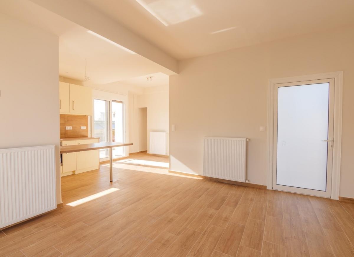 The apartment is a 69m2 corner penthouse occupying exclusively the whole of the 6h (top) floor with panoramic views across Athens and the mountains of Hymettus and Parnitha. There is a partial Acropolis view and full view of Lycabettus. The terraces cover a further 55m2 making a total surface area of 124m2. The outside area is ideal for barbecues, outdoor dining and entertaining with plenty of space for furniture and plants to make a stunning rooftop oasis in the city centre. You can watch the moon rise over the mountain of Hymettos from the privacy of your balcony while you dine outside taking in the landmark views. The apartment block was built in 1961 and looks on to a pedestrian zone which means that you can hardly hear the sound of the traffic. There are protected neoclassical buildings opposite which mean that your view will never be obstructed. Furthermore, facing south, you can enjoy added privacy as the balcony is not visible from the street. The apartment itself has now been renovated and fully refurbished into a bright and airy modern living space making it a one of a kind residence.