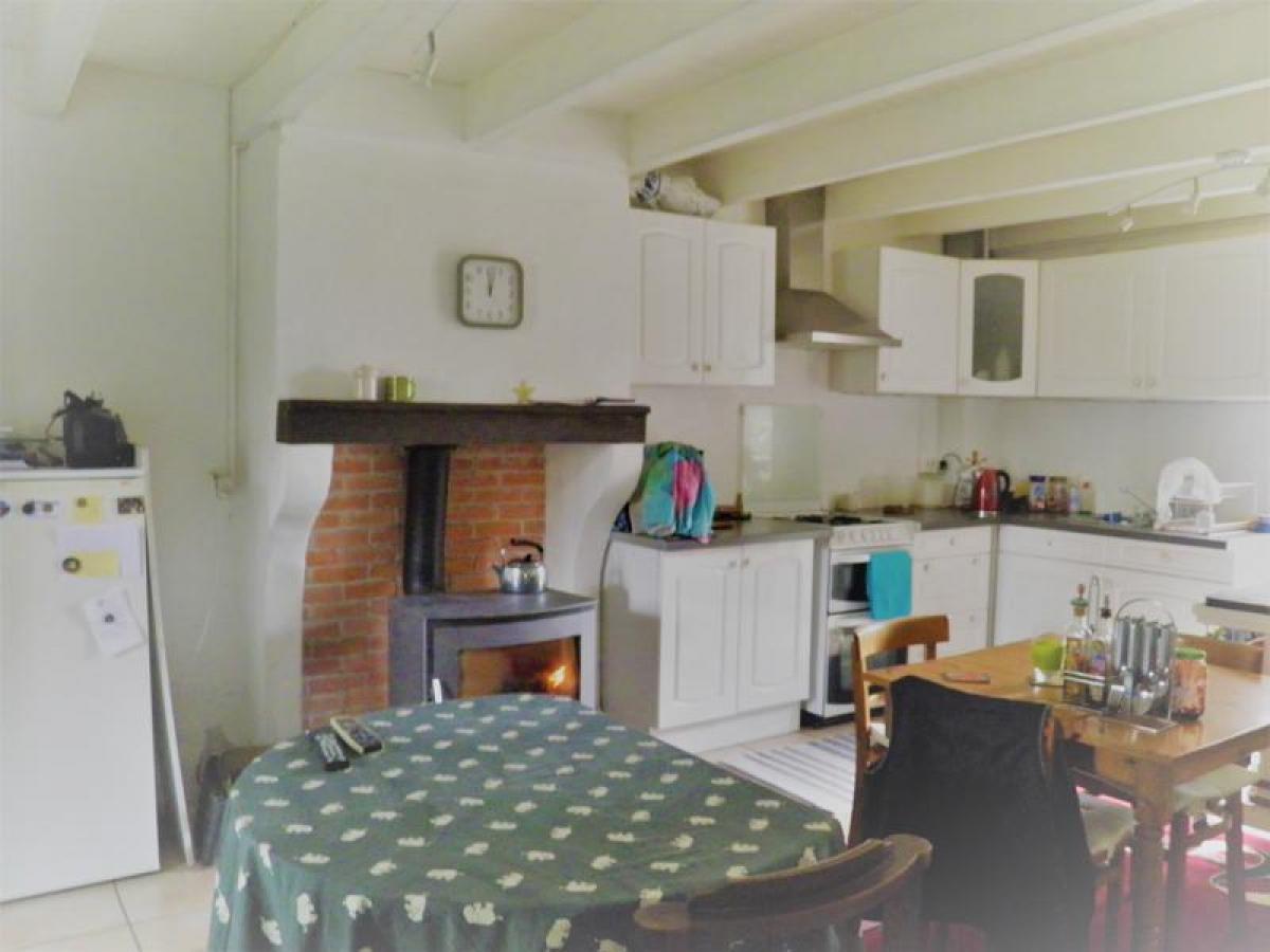 Kitchen (24m2) with woodburner. Door to rear terrace.