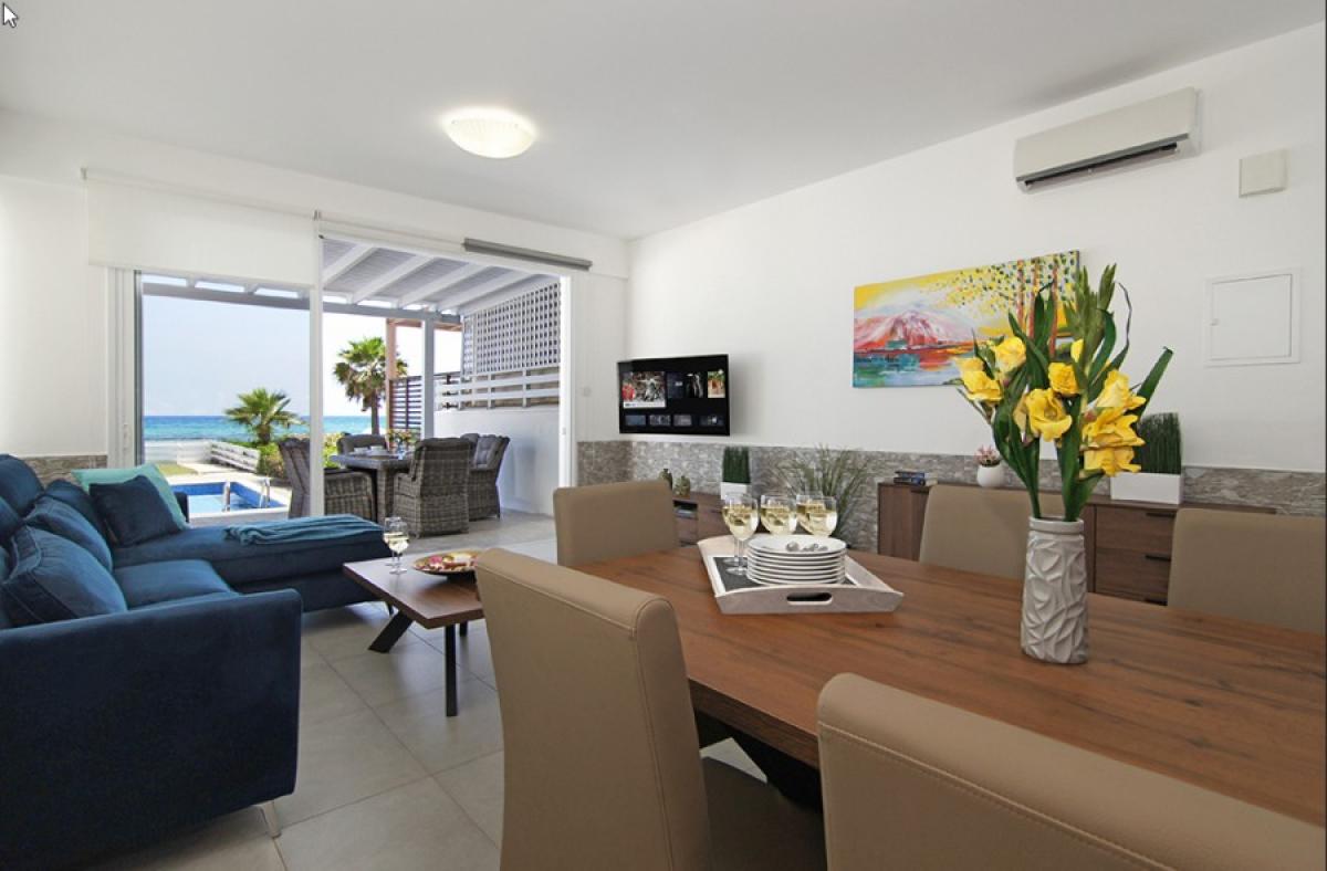 This is a dream property in all aspects! Located right on the sea, minutes away from sandy beaches and the new Ayia Napa Marina, it combines privacy with the absolute privilege of waking up to this magnificent sight of the blue sea! Unobstructed views of the sea from all spots of the villa! Total inside area of 140 square meters with 3 bedrooms.