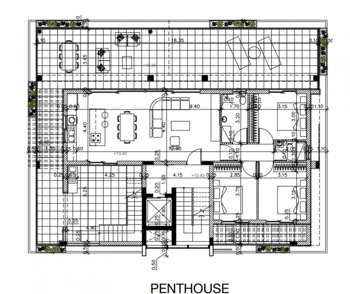 Luxury & modern whole floor penthouse comprises of 3 bedrooms situated in the fantastic area of Agios Athanasios with stunning sea views only a few minutesa?? drive to the sea and Limassola??s vibrant town center, with all amenities and services nearby. Inner area comprises of 103.5 sqm & covered verandas of 30 sqm with a roof garden of 58 sqm with ample uncovered areas of 90 sqm. Great property to be lived in a city and prestigious area of a contemporary building for a family or individuals who enjoys a modern living in Limassol city.Completion- January 2023.