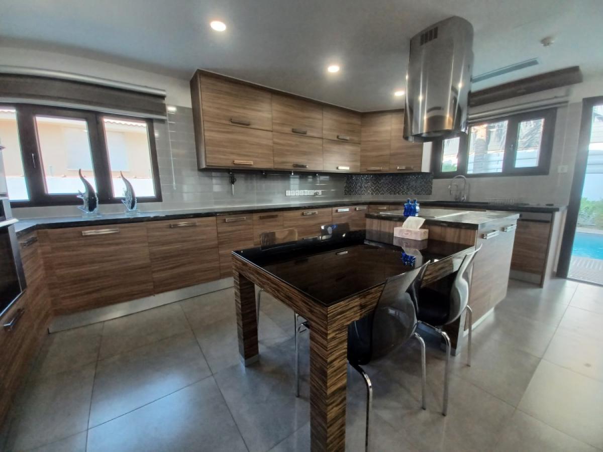 Luxury 4 bedroom detached villa for sale in Agios Athanasios, Limassol. Recently renovated and in excellent condition. The property is located in a quiet residential area just a few minute's drive to all amenities such as banks, supermarkets, schools and highway. It consists of 3 levels: The ground floor has an open plan fully equipped kitchen with top finishes, 3 seating areas, a dining area and a guest WC. Doors leading onto a patio with private swimming pool. The first floor includes 3 bedrooms with master en suite and family bathroom. The top floor has an additional bedroom with a shower room and office space.A