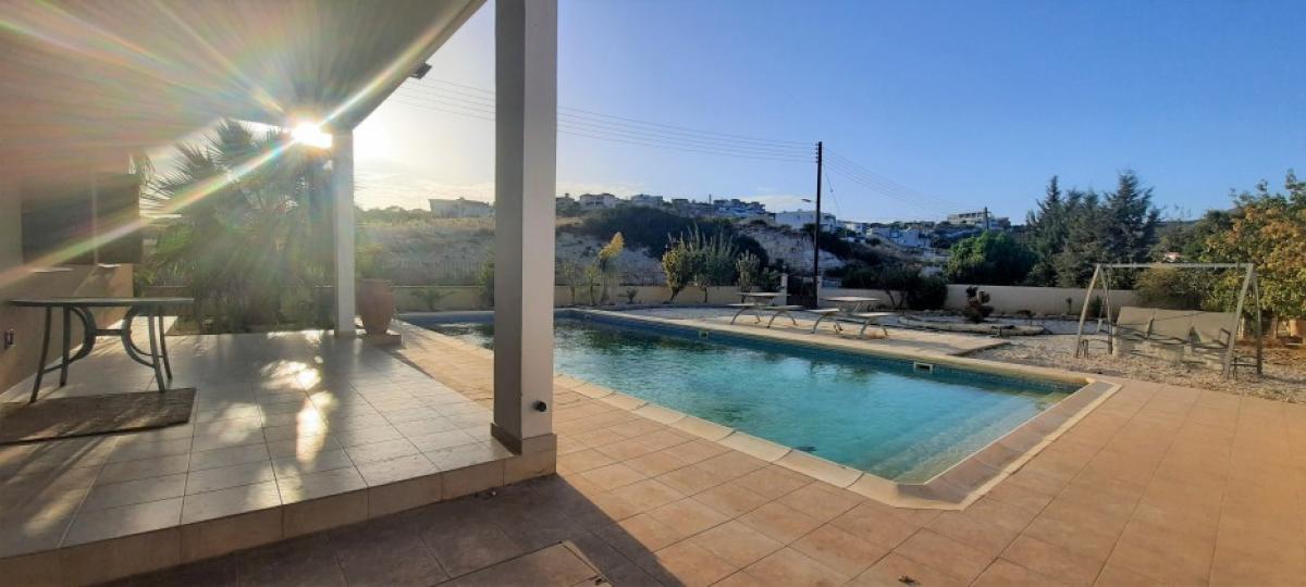 A fantastic 3 en -suite +1 bedroom & office room detached house spread over two levels located in Agios Athanasios Limassol area, just a short distance from the high way and with easy access to the city center.It is 4km north of Limassol town centre and only 4km from the nearest beach.Stunning setting, spacious rooms and urban comfort are combined for you to enjoy a home of elegance.Build in 2010 the residence sits on a plot of 751mA?, it covers an internal area of 279mA?, an additional 60mA? of covered and uncovered verandas and a 5m x 12m private swimming pool.On entering the front door you can find an open plan spacious living/dining area, siting room and main kitchen, a guest w.c.A staircase leading to the upper floor finds 3 bedrooms with own W.C and shower, 2 of which (Master Bedroom) and a room currently used as an office/study room. Two large verandas of the outdoor space offer you a perfect place to relax and admire magnificent sea views. A spacious semi-basement features covered parking . a store room/laundry room, engine room .Central heating is available throughout the property, as well as split units in all bedrooms and A/C. There is also an alarm system. The immediate area mainly consists of undeveloped parcels of land and some residential units. As the house is at a dead-end street and surrounded by green area is very peaceful and perfect for a permanent living offering plenty of security. Another extra point to consider are the Solar Panels installed on the property, making the house almost fully energy self sufficient. With classy and comfortable interior, quite neighborhood and very easy access to Limassol city centre, this house has its own personality!