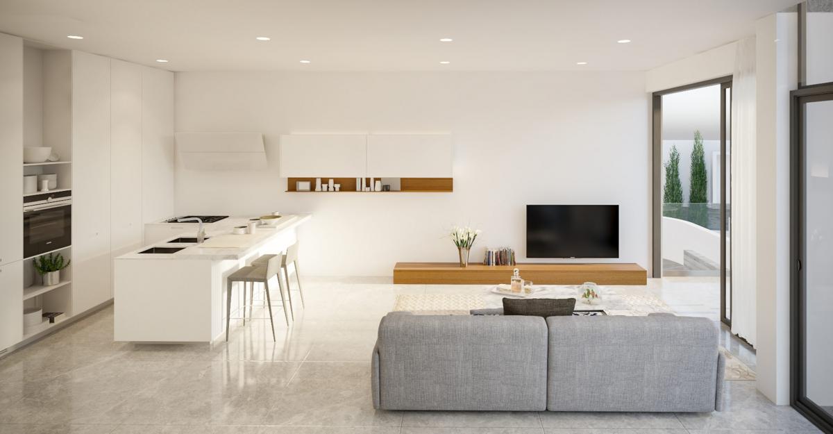 Property Specifications:Townhouse 5A is a delightful 2-bedroom residence set in a prime location.Offers a total covered area of 107 square meters.Designed with an open-plan living and dining area, aligning with modern, contemporary lifestyles.Includes one WC, one bathroom, and an en-suite bathroom for a perfect balance of privacy and convenience.Comes with a 12 square meter covered veranda, providing an inviting space for outdoor relaxation and entertainment.Built using natural materials such as stone, warm iroko hardwood, and luxurious marbles drawn directly from the earth.The architecture of the villa features fairface concrete, natural stone, and iroko-framed terraces, creating a harmonious balance of materials.Benefits:Positioned in one of the most desirable residential suburbs of Limassol, it enhances the exclusivity and value of the property.Spectacular views of the Limassol coastline and marina and just moments away from Limassol?s finest five star hotels.The westward orientation of the property allows residents to enjoy picturesque sunset views.Aria is situated in Agios Tychonas, Limassol, a highly desirable suburb with coastal views. Limassol is Cyprus? cosmopolitan capital, its most important business district and a vibrant modern playground. It is consistently ranked as one of the world?s leading cities for quality of life. Nowhere in Cyprus is there a richer mix of modern culture and fascinating heritage.