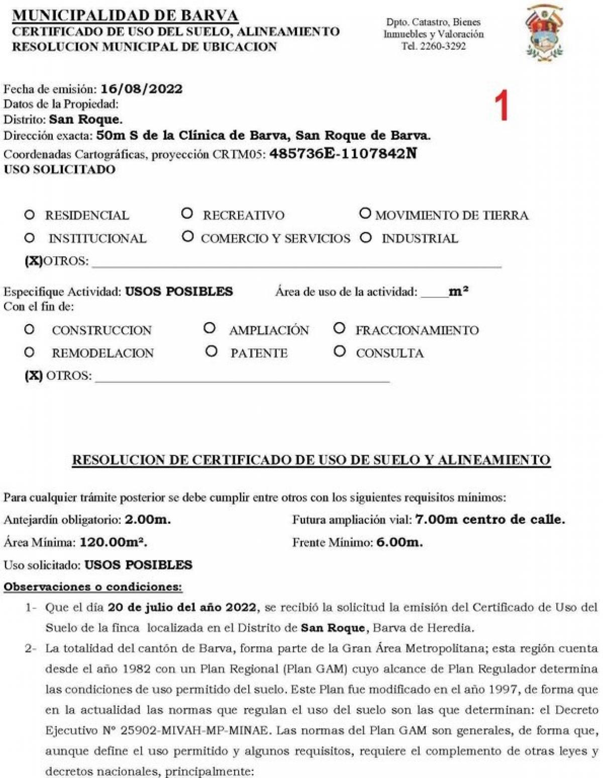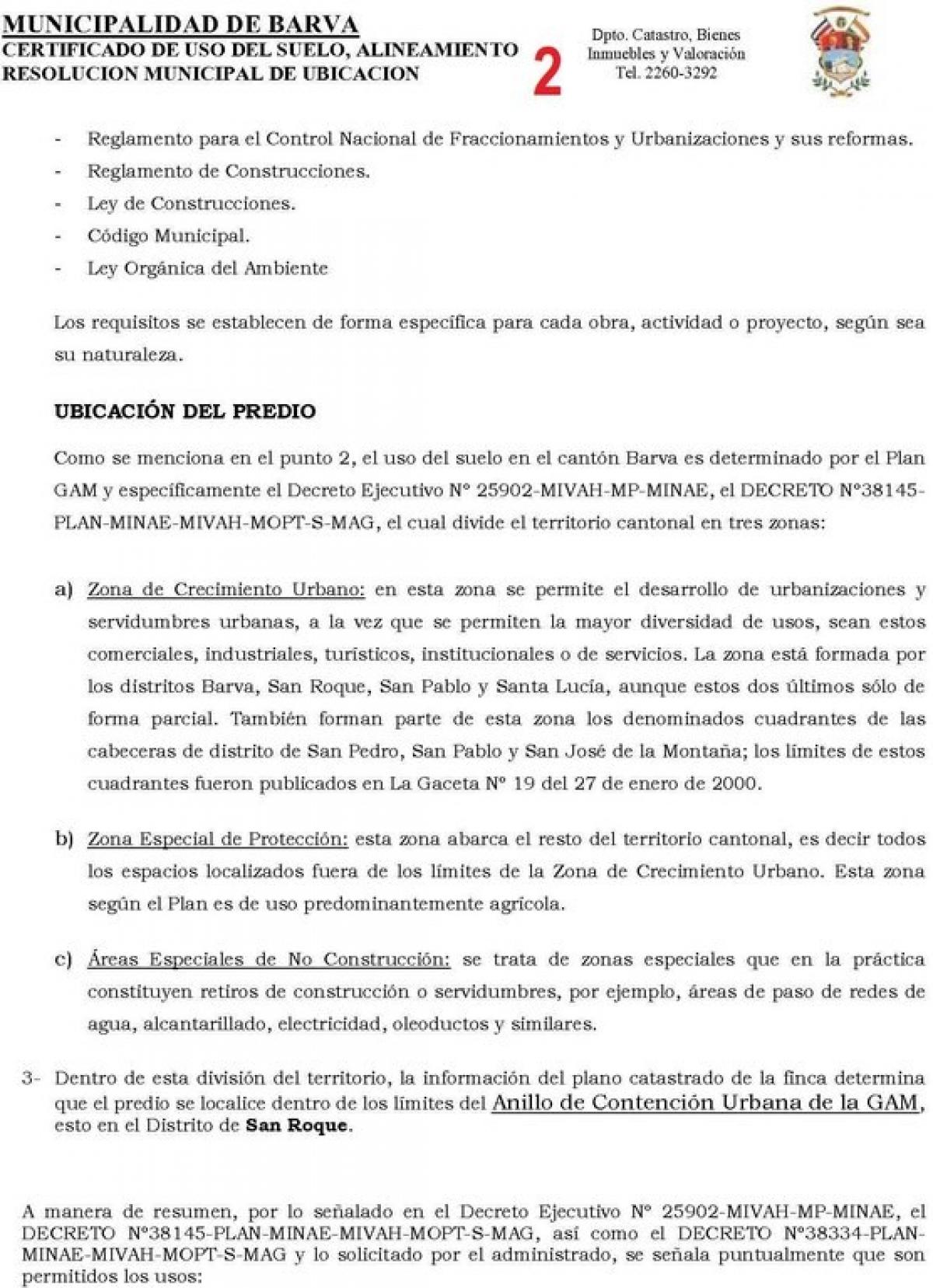 for sale multi-purpose commercial property in San Roque Barva Heredia Costa Rica Vera Castro Chaves 8434-6566 8428-6566 ? 80,000,000 CRC (+- $121,200) ? ? Heredia Province ? Barva Canton ? San Roque District 40204 ? ? 14th street, east side, lot C ? ? from Coopesiba Barva on Route 128, 50 meters South ? ? for WAZE and Google Maps 10.018982, -84.130269 ? ? 360 m2 lot size ? 10 meters front ? 38.3 meters deep ? ? 140 m2 built area ? year 1985 ? 1,151 meters above sea level. ? ? 3 bedrooms ? 1 bathroom ? living room ? dining room ? laundry area ? ? kitchen ? 1 car garage ? septic tank ? no liens or mortgages ? Zoning: Urban Growth Zone within the Urban Containment Ring of the Great Metropolitan Area Permitted Uses: Residential; commercial; services; state services Minimum requirements: front garden 2 m; minimum area 120 m2; future road expansion 7 m from the center of the street