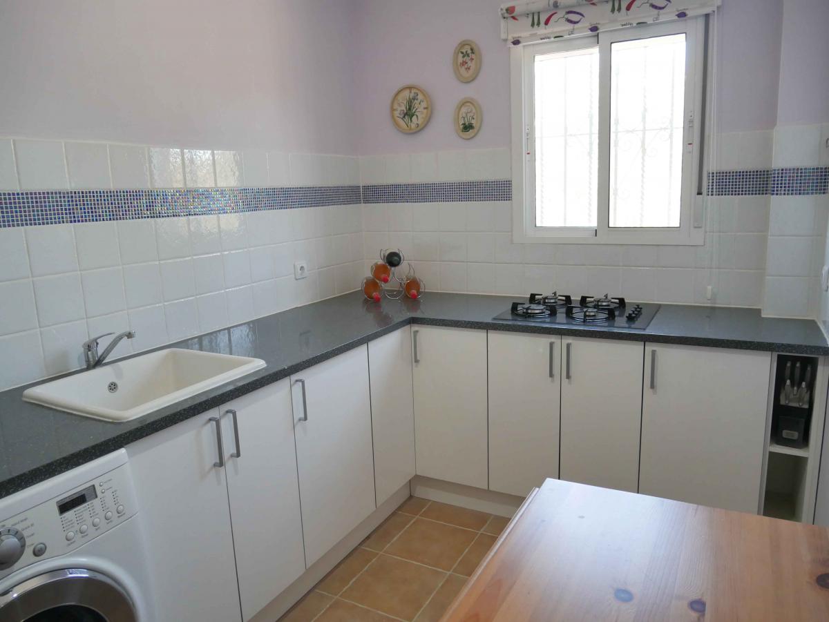 This lovely garden contains 6 palm trees, 4 Jacaranda trees, many fruit trees: orange, lemon, plum, 2 fig trees (1 black, 1 green), pear, nectarine, 2 pomegranate, olives, 2 Nispero or Lowquat trees, a grapefruit and a lime. There is also a spectacular specimen of Callistemon (or Bottlebrush), which flowers twice a year. Furthermore, there are 2 lockable sheds for garden tools, bicycles etc. A clever storage cupboard has been built on the side of the kitchen wall, in which to store gas cylinders, in a safe manner and out of sight.