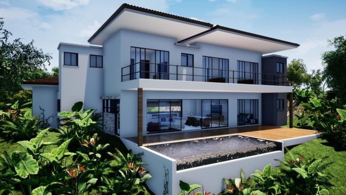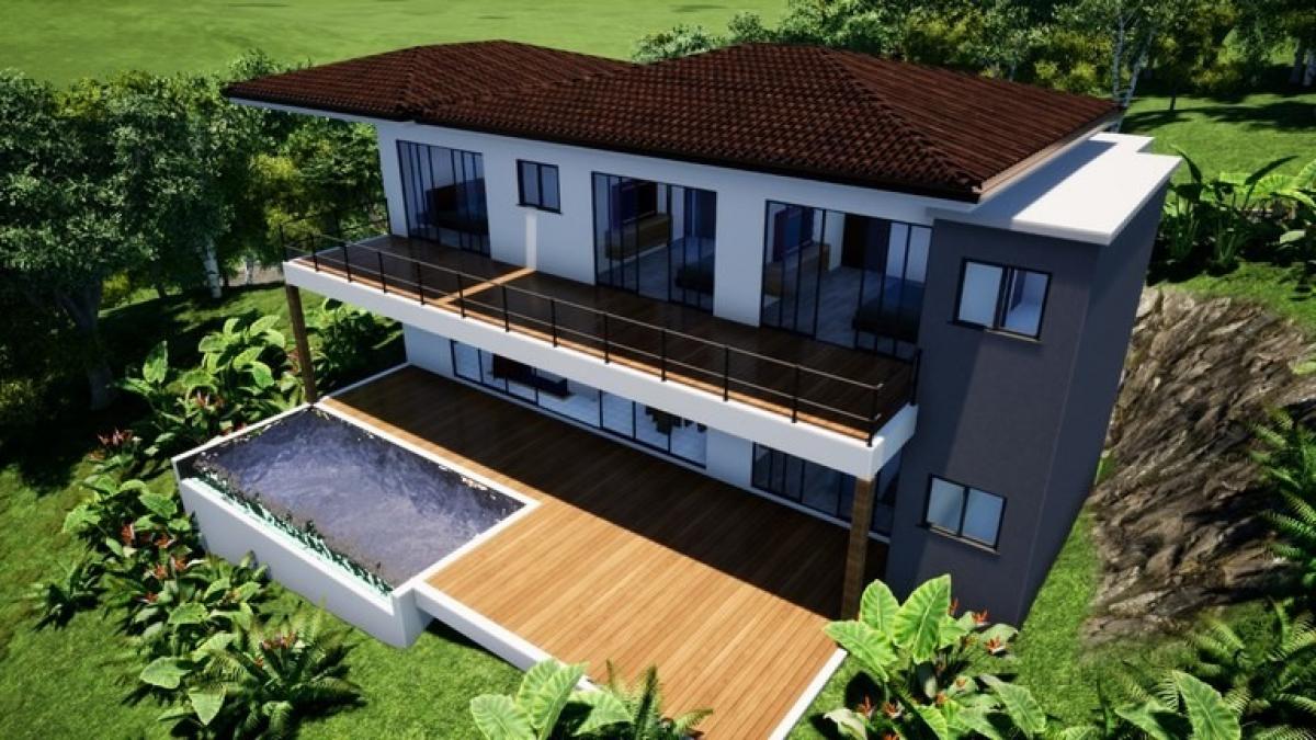 This house with 4 bedrooms and 4 bathrooms is located in Playas del Coco, Guanacaste Costa Rica, in the county of Carrillo. This near the coast property with mountain and ocean views is situated in the tropical dry forest of Costa Rica. The land area of this house is 2,498.41 square meter (26,892.55 square feet), and it has a living space of 350.00 square meter (3,767.35 square feet). This house has air conditioning through multiple wall units. The property also features a community pool and an infinity pool.