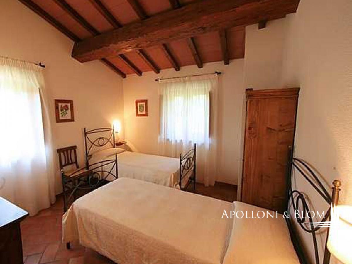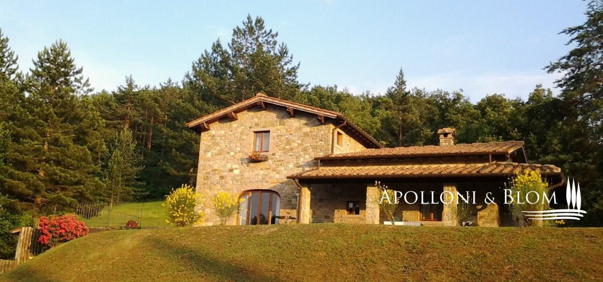 Restored property spanning 16 hectares/41 acres with certified olive grove, woodland, panoramic views and photovoltaic system, minutes from La Verna Sanctuary. Set among ancient parish churches, medieval castles and the Casentino National Park, this charming hilltop location at 450 metres/1,476 ft sits between Arezzo and Florence, just a few minutes from the Sanctuary of La Verna and the Monastery of Camaldoli. Easily accessed via a private driveway, Casale La Verna is an elegant 19th-century villa in traditional rustic style, accompanied by three additional farmhouses — all beautifully restored for guests and staff. They feature classic stone façades, terracotta roof tiles, porticoes, garden terraces for al fresco dining, brick archways, wooden window frames and exposed beam ceilings, faithfully reflecting the authenticity of 19th-century Tuscan estates. All rooms are equipped with air conditioning, heating via both a thermo-fireplace and pellet boiler, and, more recently, a newly installed photovoltaic system with state-of-the-art solar panels. The main villa offers a spacious living area on the ground floor with reception rooms featuring brick arches and fireplaces, a portico, and four bedrooms with parquet flooring, including a particularly unique room in the tower, with eight small windows, a Jacuzzi bath and a private terrace. The guest farmhouses are set slightly apart from the main villa and contain various types of apartments with one or two bedrooms, as well as a 130 sq m/1,399 sq ft party hall with fireplace and open views of the garden and pool. The extensive landscaped grounds feature lawns, pathways bordered by Mediterranean flowerbeds and mature trees. They frame the buildings and include the swimming pool, technical rooms, and access to three garages, storage rooms and a cellar. The olive grove, orchard and vegetable garden are certified organic, cultivated in harmony with nature and following the most traditional Tuscan farming methods. Move-in ready and set within a private, fully fenced area with an automatic gate, this property is perfect for family living and entertaining, as well as for agritourism activities. PROPERTY Ref: ARZ1923 Location: Chiusi della Verna, Province: Arezzo, Region: Tuscany Type: estate of 16.94 hectares/41.8 acres with main house, 3 guest houses and agricultural outbuildings totalling approximately 1,090 sqm of buildings/11,733, garden with pool, organic olive grove, orchard, woodland and pasture Annex/es: equipment stores 100 sqm/1,076 sq ft, semi-basement technical rooms 50 sqm/538 sq ft, triple garage 60 sqm/646 sq ft with independent access, cellar 40 sqm/431 sq ft Year of construction: mid-1800s Year of restoration: 1996-2004-2005 Conditions: good Land/Garden: 16.94 hectares of which approximately 12 ha certifiable as organic (certification to be updated post-sale), with 300 olive trees (1,887 sqm) and approximately 100 fruit trees (367 sqm) equipped with programmed drip irrigation. Approximately 12.35 ha of arable and tree-planted arable land planted with premium hardwood (maple, cherry, walnut, oak, ash, eleagnus), 1.23 ha meadow, 0.19 ha pasture and 2.95 ha mixed woodland. Agricultural equipment for autonomous maintenance included Terrace/Balcony: 60 sqm terrace in front of Party Hall, 35 sqm terrace at Falcons House Swimming pool: 16x8 m, terracotta edging, porphyry paving, 30 sqm/323 sq ft solarium porphyry-paved solarium, lawned garden, fenced area protected by hedging Parking: triple garage 60 sqm/646 sq ft for three cars with independent entrances Utilities: Fixed telephone network: available Internet: available Heating: Main House pellet boiler, Party House thermo-fireplaces and gas boiler, Falcons House thermo-fireplace Water: mains water supply + 2 wells for irrigation Electricity: connected + photovoltaic solar panels Water waste: Imhoff tank Air conditioning in all buildings Automatic gates Sale method: Share transfer. Possibility to acquire property furnishings together with the property. Furnishings in the main house are not included in the sale. Distance from services: 2.5 km/1.5 miles Distance from main airports: Florence 86 km/53 miles, Perugia 114 km/71 miles Gravel road: 300 m/984 ft Layout: Main House 450 sqm/4,844 sq ft, restored 1996, earthquake-resistant foundation Ground Floor: portico, reception room with brick arches and Pietra Serena stone fireplace, dining room, study, eat-in kitchen with pantry, bathroom, boiler room and laundry First Floor: 3 bedrooms with en-suite bathrooms, terrace with loggia, master bedroom in tower with 8 windows, walk-in wardrobe, bathroom with jacuzzi bath and terrace Party House earthquake-resistant reinforced concrete structure Ground Floor: 130 sqm/1,399 sq ft entertaining hall with fireplace, kitchen, ante-bathroom with Pietra Serena stone washbasin, guest cloakroom, 60 sqm/646 sq ft terrace in Luserna stone Lower Ground Floor: 90 sqm/969 sq ft caretaker's flat (living room with built-in kitchenette and thermo-fireplace, 2 bedrooms, 2 bathrooms), triple garage 60 sqm/646 sq ft, cellar 40 sqm/431 sq ft Falcons House 300 m/984 ft from main villa, with loggia, earthquake-resistant Flat 1: 70 sqm/753 sq ft with living room and built-in kitchenette, Pietra Serena stone fireplace, bedroom, bathroom with shower Flat 2: 100 sqm/1,076 sq ft over two levels – Ground Floor: living-dining room with corner fireplace, built-in kitchen, 35 sqm/377 sq ft terrace, bathroom First Floor: 2 double bedrooms, bathroom- garage