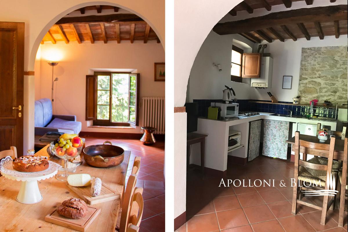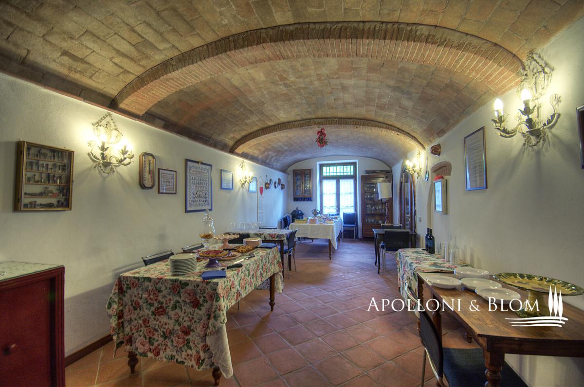 Period residence dated 1700 set in an exceptionally private location, finely restored with swimming pool, garden, established BB, for sale in Castellina in Chianti. Nestled in the historic heart of the Chianti Classico region, in one of Tuscany’s most sought-after panoramic positions, this magnificent stone country house dating back to the 1700s is offered for sale. The property underwent a meticulous and extensive restoration completed in 2001. The renovation fully respected the traditional Tuscan style, and the building is presented today in excellent condition spanning 530 sq m (5,704 sq ft) over two levels divided into five self-contained apartments of different types, an ideal configuration to continue or expand the established Bed Breakfast activity. The layout includes a total of twenty rooms, comprising thirteen bedrooms and twelve bathrooms, along with five fully equipped kitchens. The interiors feature fine traditional details such as terracotta floors, exposed wooden beams and vaulted ceilings. The residence is surrounded by 3,000 sq m (0.74 acres) of landscaped gardens housing a splendid 10×5 m private swimming pool, with breathtaking views over the vineyards, cypress trees and the rolling hills of the valley. Access is facilitated by a large outdoor parking area for guests. The villa enjoys a central and privileged location, just a short distance from the village of Castellina in Chianti and strategically placed between the renowned art cities of Florence and Siena. PROPERTY Ref: CNT3409 Location: Castellina in Chianti, Province of Siena, Tuscany Type: 530 sq m/5,704 sq ft stone country house on two levels finely restored into 5 residential units with pool and garden Year of construction: 1700 Year of restoration: 2001 Conditions: excellent Land/Garden: 3,000 sq m/0.74 acres landscaped garden Terrace/Balcony: 1 terrace Swimming pool: 10×5 m panoramic pool with chlorine system Parking: outdoor parking area Utilities: Fixed telephone network: available Internet: satellite Heating: LPG + wood Water: mains city supply (aqueduct at 100 metres/328 ft) + 1 well Electricity: available Water waste: Imhoff tank Distance from services: 2 km/1.2 miles Distance from main airports: Florence 42 km/26 miles, Pisa 93 km/58 miles, Perugia 160 km/99 miles, Rome Fiumicino 308 km/191 miles- garden