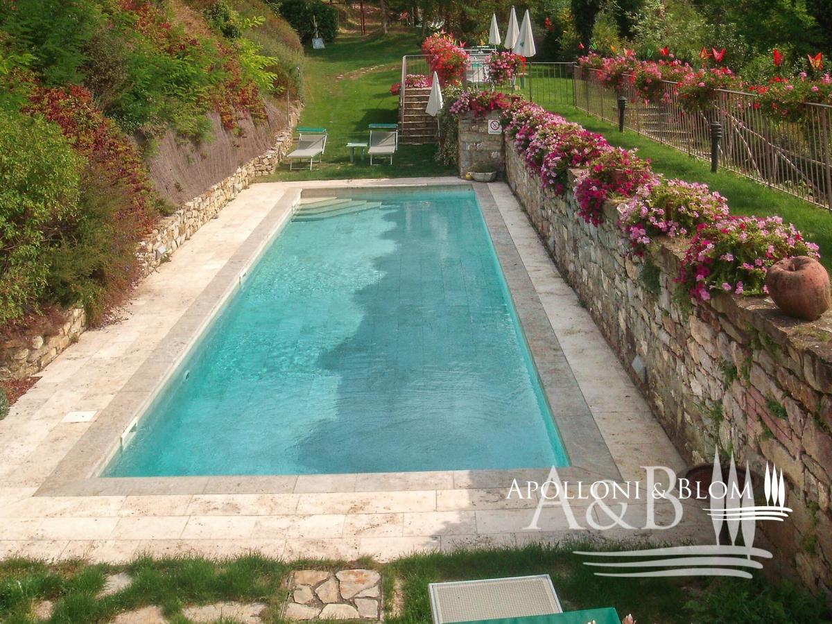 Tuscany country resort with a historical stone house, a medieval mill, land and pool for sale in Castellina in Chianti, Siena. Nestled in the beautiful Chianti hills, a few kilometers from Castellina in Chianti, in one or the most sought-after places in Tuscany, surrounded by centuries-old woods and rows of Sangiovese vines, an enchanted place where the sound of the water sounds an harmony of peace and tranquility. Masterfully restored from what was once, as early as the early Middle Ages, used as a mill to grind the crops of Chianti farmers. The restoration has made it possible to create four apartments from the main building, and two independent houses, once the mills of the place, for a total of thirteen rooms and eleven bathrooms. Each unit is self-contained with living areas equipped with fully fitted kitchen and dining. Each room revives its original features, from the exposed stones to the wooden beams and traditional terracotta floors. Around the remains of the old mill, a swimming pool and several terraces have been built for outdoor living. Every year guests and visitors choose this place for their relaxing vacations. The property is complemented by 10 hectares of land, mostly forest, as well as a small vineyard and an olive grove. PROPERTY Ref: CNT2116 Location: Castellina in Chianti, Province: Siena, Region: Tuscany Type: country resort with stone house and 2 stone annexes of approx. 500 sqm (5382 sqf) in total, swimming pool and land Annexes: 2 residential annexes restored from the medieval mill buildings of approx. 100 sqm (1076 sqf) in total Year of construction: 1200 Year of restoration: 2000 including roof insulation Conditions: good Land/Garden: 9 hectares (22 acres): 1 ha of vineyard, 1 ha of olive grove with 350 olive trees, 3 ha of arable land, an orchard and the rest is forest Swimming pool: 3.5x14 m with chlorine, with sundeck Layout: 80 sq m/ 861 sq ft two-story cottage Living/dining room with fireplace, kitchen, 1 bedroom with bathroom 28 sq m / 301 sq ft studio flat with downstair living area with kitchen, bathroom, open loft with bedroom 70 sq m/ 753 sq ft apartment with living/dining with kitchen and fireplace, 2 bedrooms, 2 bathrooms 105 sq m / 1130 sq ft two-story apartment with living/dining room with fireplace and kitchen, 3 bedrooms, 3 bathrooms 60 sq m / 645 sq ft two-story apartment with living/dining room with fireplace, kitchen, 2 bedrooms, 1 bathroom 85 sq m / 914 sq ft two-story apartment with living/dining room with fireplace, kitchen, 2 bedrooms, 1 bathroom Utilities: Fixed telephone network: active Wi-Fi: active Heating: LPG Water: private well and mains city supply Electricity: active Alarm systems + cameras Irrigation system The property is owned by a company Energy Efficiency Rating: G Distance from services: 5 km Distance from main airports: Florence 49.6 km, Pisa 55 km Gravel road: 2.5 km- garden