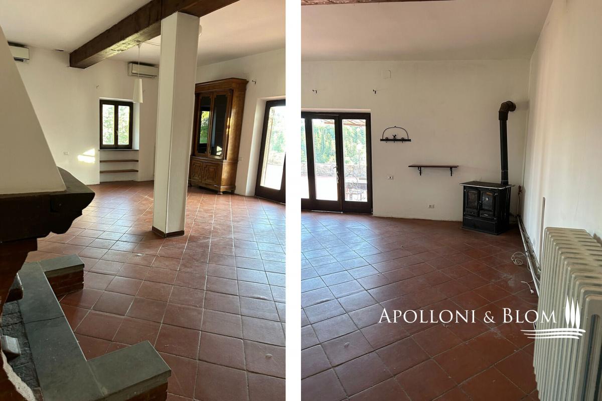 With a 3,000 sq m garden and views, this two-story property for sale in Castellina in Chianti features an annex for conversion and a 100 sqm terrace. A Tuscan classic awaiting its next chapter. Set just one kilometre from the historic hilltop village of Castellina in Chianti, in the heart of Tuscany’s famed wine country, this traditional country residence offers panoramic views and exceptional potential. The house extends to approximately 190 square metres (2,045 sq ft) arranged over two floors, it is a semi-detached with garden on three sides. Constructed in 1974, the interiors retain a classic Tuscan character, with terracotta floors in the living areas, parquet in the bedrooms, and a handsome open fireplace anchoring the main sitting room. A superb 100 sq m (1,075 sq ft) terracotta-paved terrace, enjoys sweeping views, an ideal setting for outdoor entertaining or quiet contemplation. The ground floor comprises a welcoming entrance hall, large living room with fireplace, kitchen, bathroom, and a useful understairs laundry area. A timber staircase leads to the upper floor, where four double bedrooms and a family bathroom. The house benefits from a dual access layout, with entrances from both the garden and the terrace, enhancing its flexibility for potential division. Beneath the terrace, a 70 sq m (750 sq ft) annex, currently used as garage and storage space, presents a compelling opportunity for conversion into a self-contained guest apartment or artist’s studio, subject to planning. The property is enveloped on the three sides by a private, fully fenced garden of approximately 3,000 sqm (0.75 acres), accessed via a gated private driveway extending 500 metres from the main road. The grounds offer both privacy and scope for landscaping, a swimming pool, or kitchen garden. Essential services are already in place, including mains water, telephone line, internet, and heating via LPG system, wood-burning fireplace, and pellet stove. This is a compelling restoration prospect for those seeking to create an elegant country retreat in one of Chianti’s most desirable locations, an idyllic balance of seclusion and convenience, just 1 km from local amenities and within easy reach of Siena, Florence, and major international airports. Property Ref: CNT3368 Location: Castellina in Chianti, Province of Siena, Region of Tuscany Type: Country house of 190 sq m/2,045 sq ft arranged over two floors, plus a 70 sq m/750 sq ft garage/storage area on the lower ground floor, and a 3,000 sq m/0.75 acres garden Year of Construction: 1974 Condition: In need of modernisation, particularly with regard to systems and installations Land/Garden: 3,000 sq m/0.75 acres of private, fenced garden surrounding the property, with automatic gate Terrace/Balcony: 100 sq m/1,075 sq ft terracotta-paved terrace with open views over the surrounding countryside Utilities: Fixed telephone network: available Internet: available Heating: LPG + fireplace + pellet stove Water: mains city supply Electricity: available Water waste: mains city connection Distance to services: 1 km Distance to main airports: Florence 50 km, Pisa 100 km Gravel road: 500 metres of private road Layout: Ground Floor: entrance hall, sitting room with fireplace, kitchen, 1 bathroom, understairs laundry area First Floor: 4 double bedrooms, 1 bathroom Annexe: 70 sq m/750 sq ft building currently used as a garage, with potential for conversion into habitable space or guest accommodation- garden